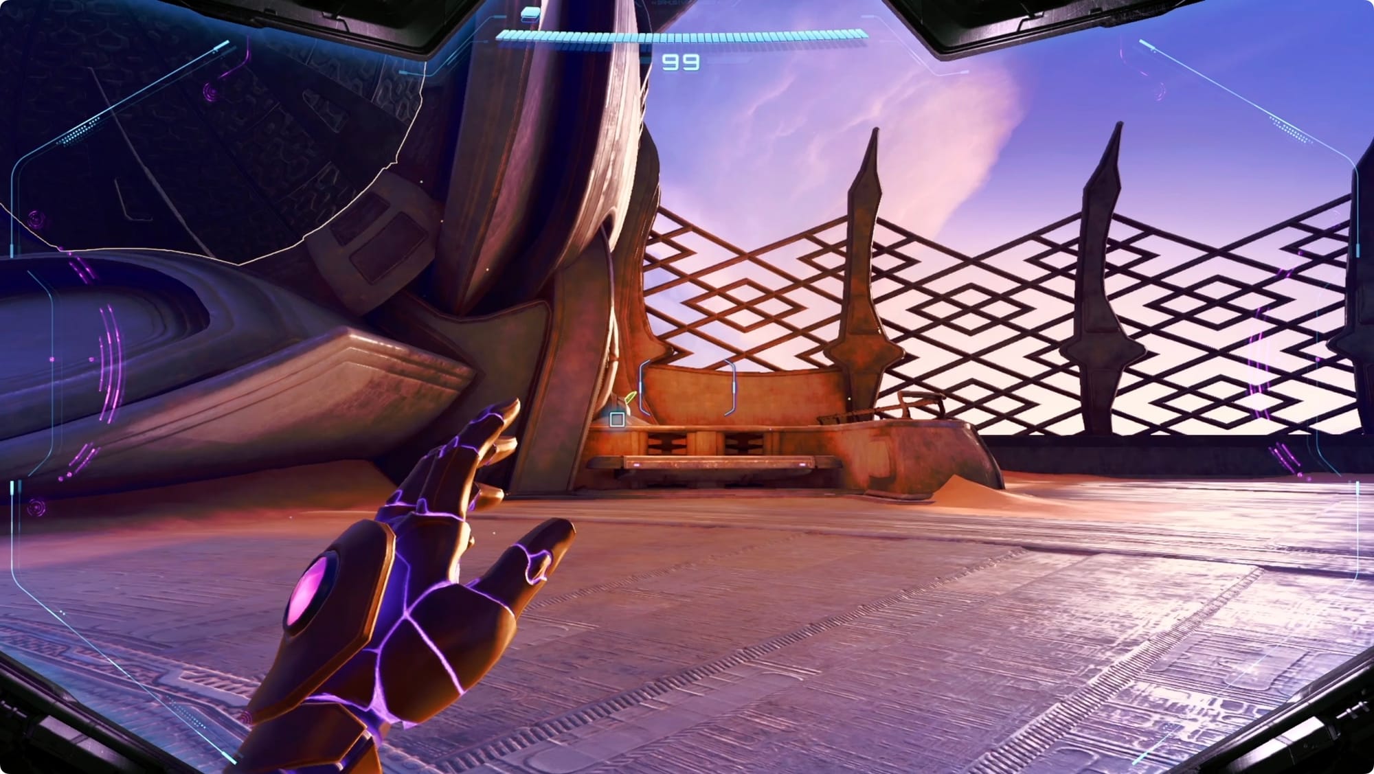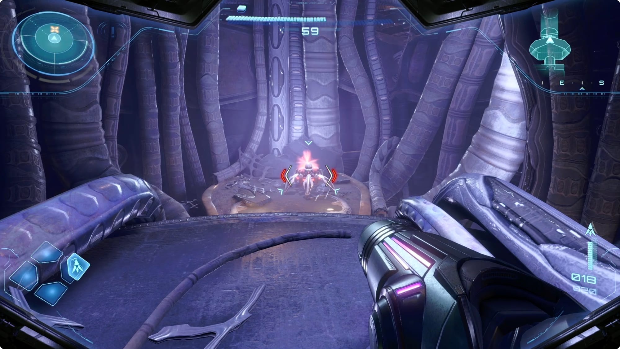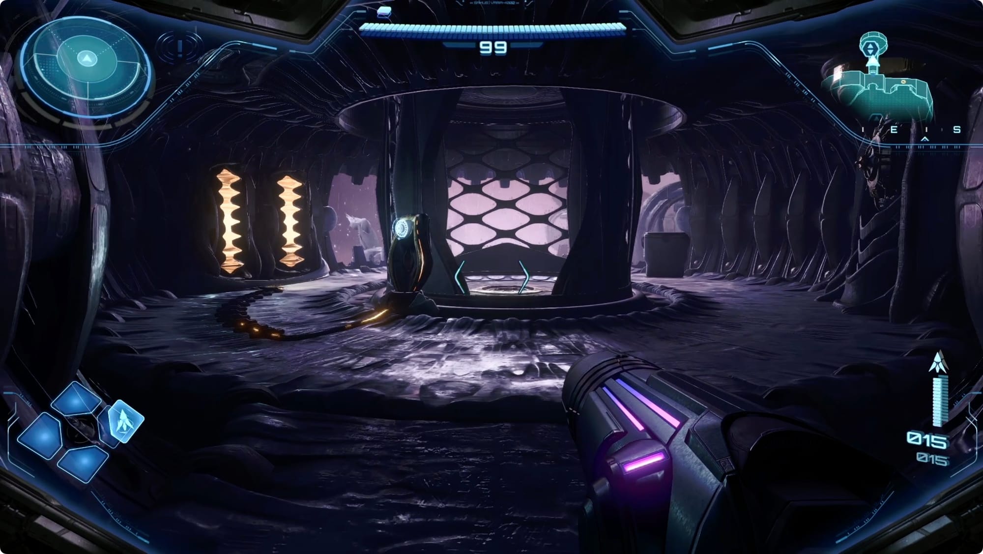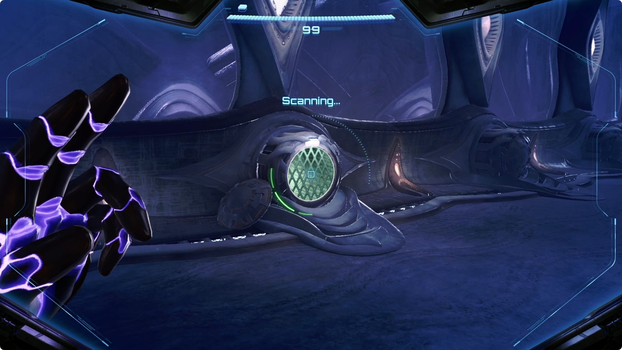 As you approach the entrance, look to the left for another Lamorn statue to scan. You’ll get a cutscene that teases (oh hell yeah) the Vi-O-La. There’s also an Energy Tank behind a lock you can’t open yet.