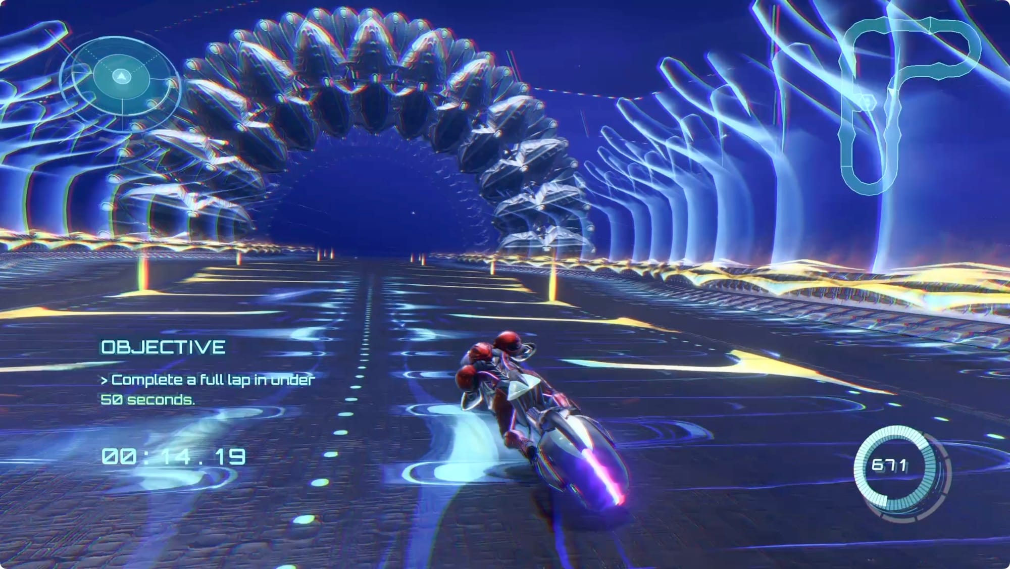 The first challenge is to complete a lap in under 50 seconds — just go flat out and you’ll have plenty of time to spare. The second challenge unlocks the Vi-O-La Boost ability. The third unlocks the Power Slide.