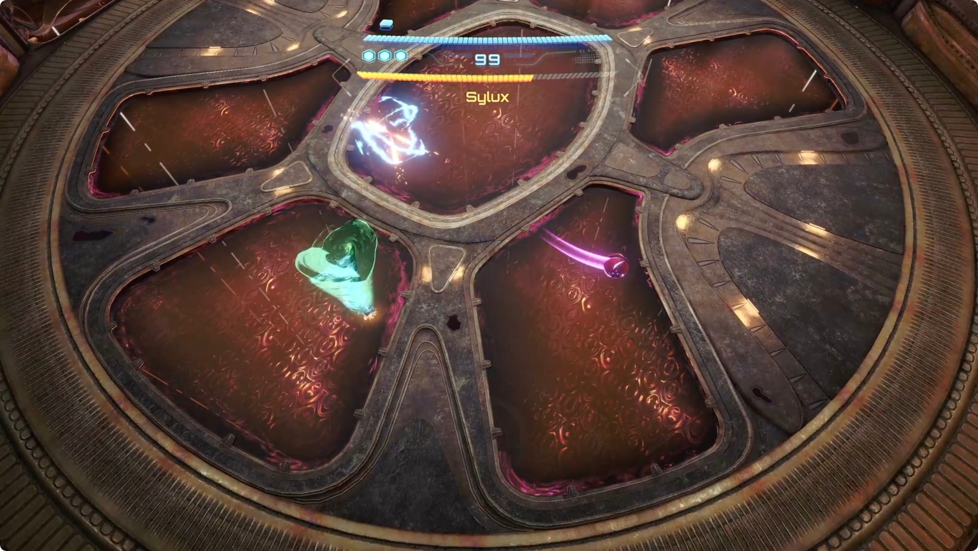Back in the Archives, you’ll run into Sylux again (kinda). The only tricky part(s) of the fight is when he turns into a green shielded tornado. You can’t shoot him or missile him in this form.