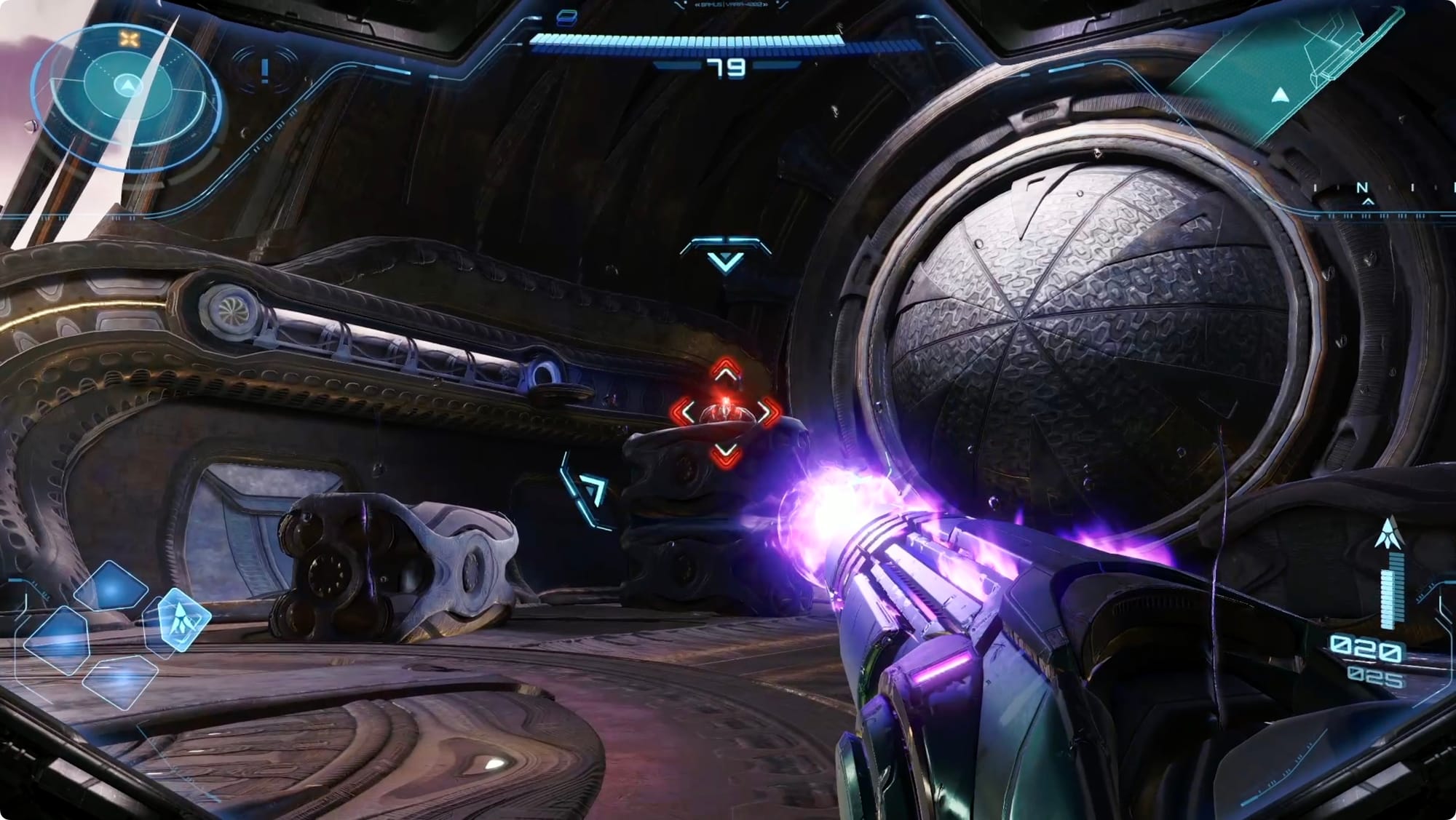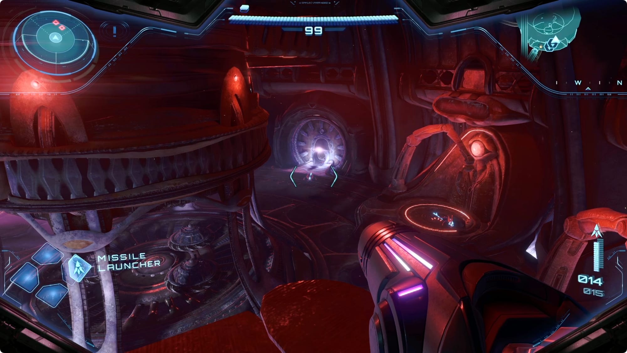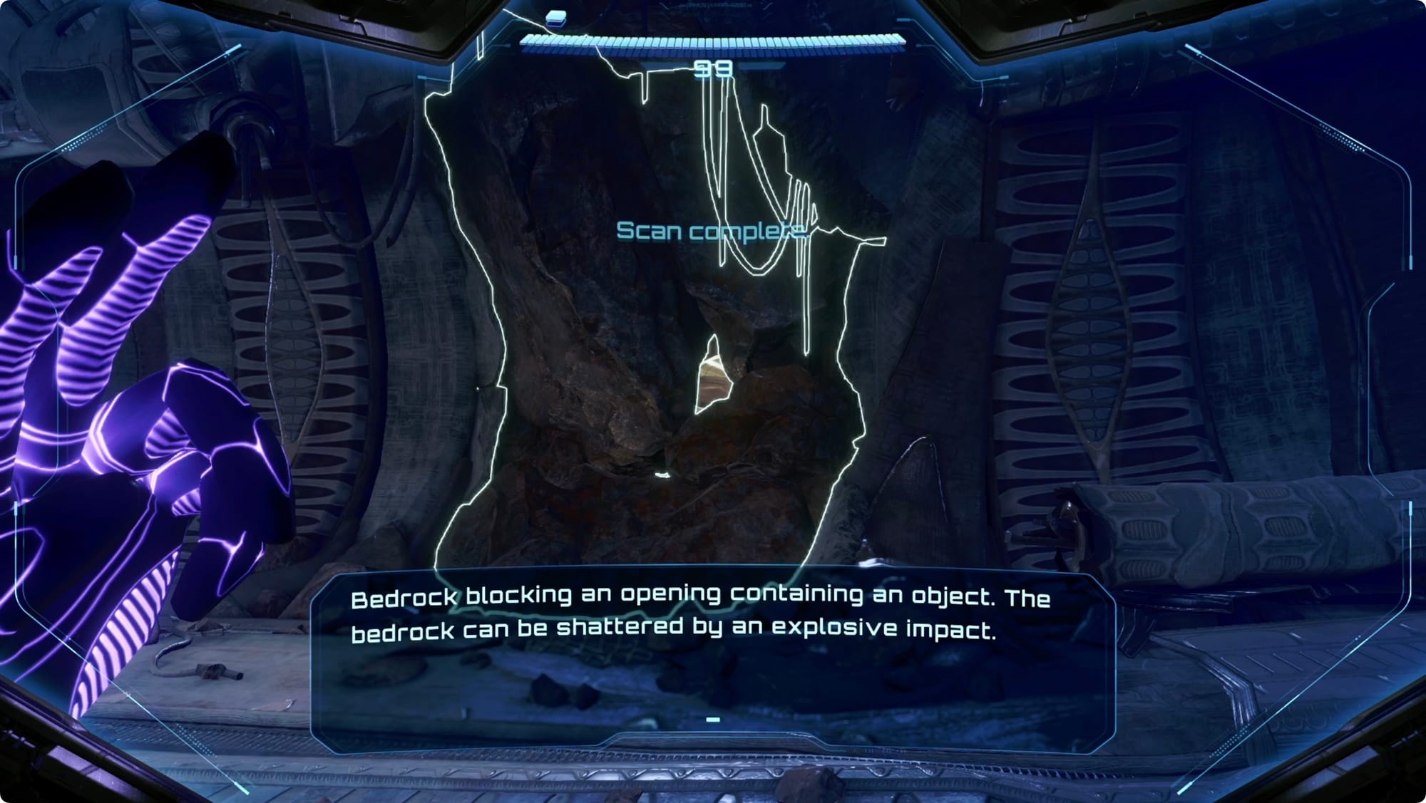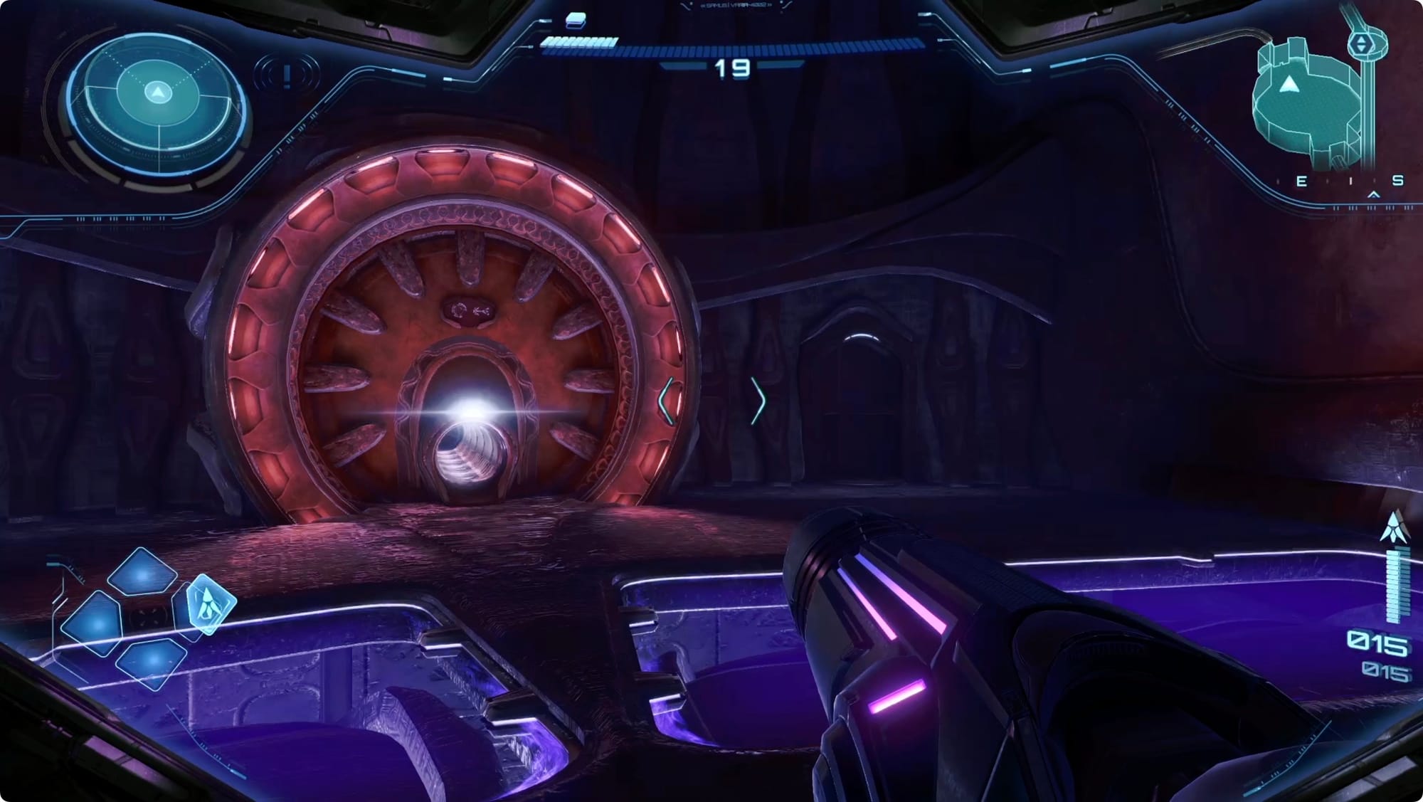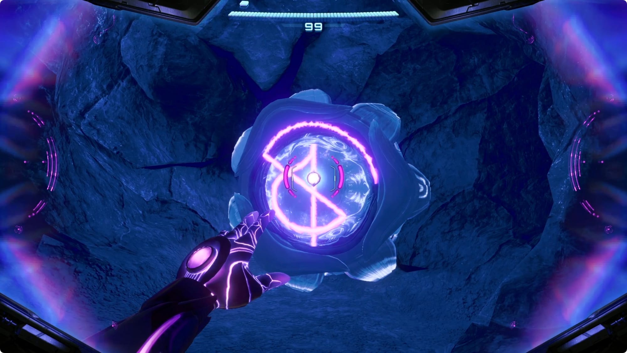 Switch to your scanner and then use the left stick to maneuver the purple ball along the path to unlock the vault and pick up a Missile Expansion.