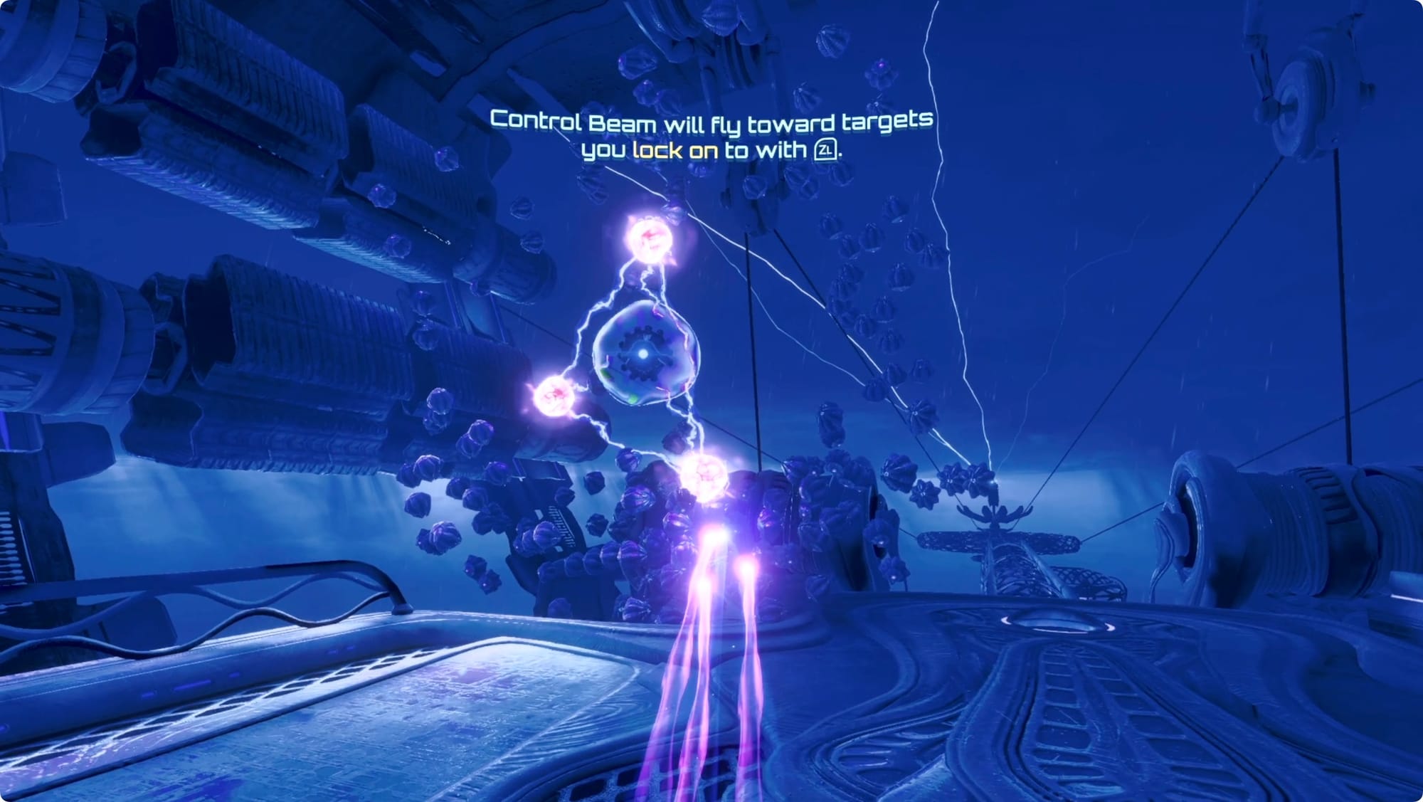As you leave, you’ll get jumped by a Flight Drone Mechanoid swarm. Use a Control Beam to take out the glowing orbs around the central drone, and then missile it as fast as you can while its shields are down.
