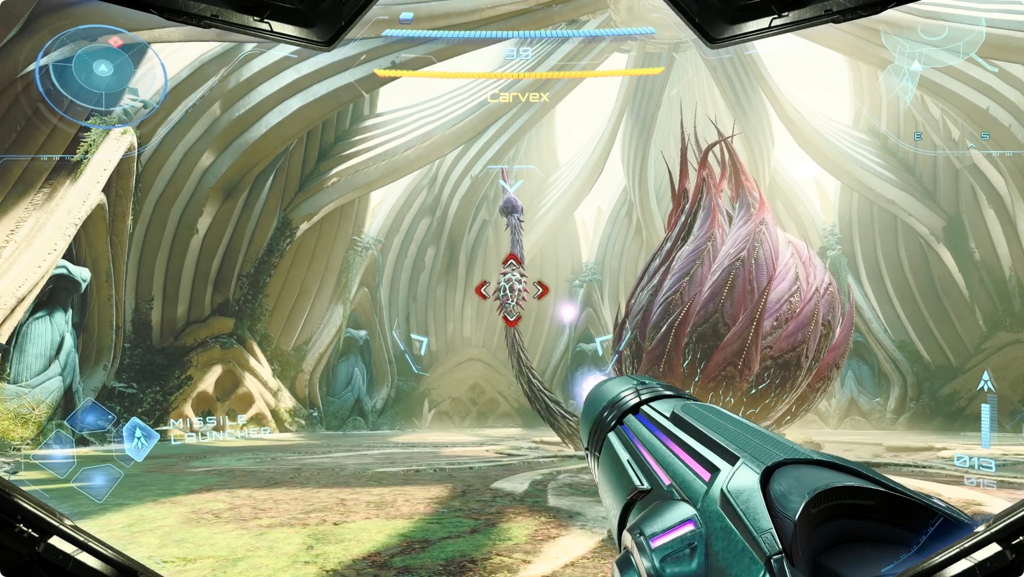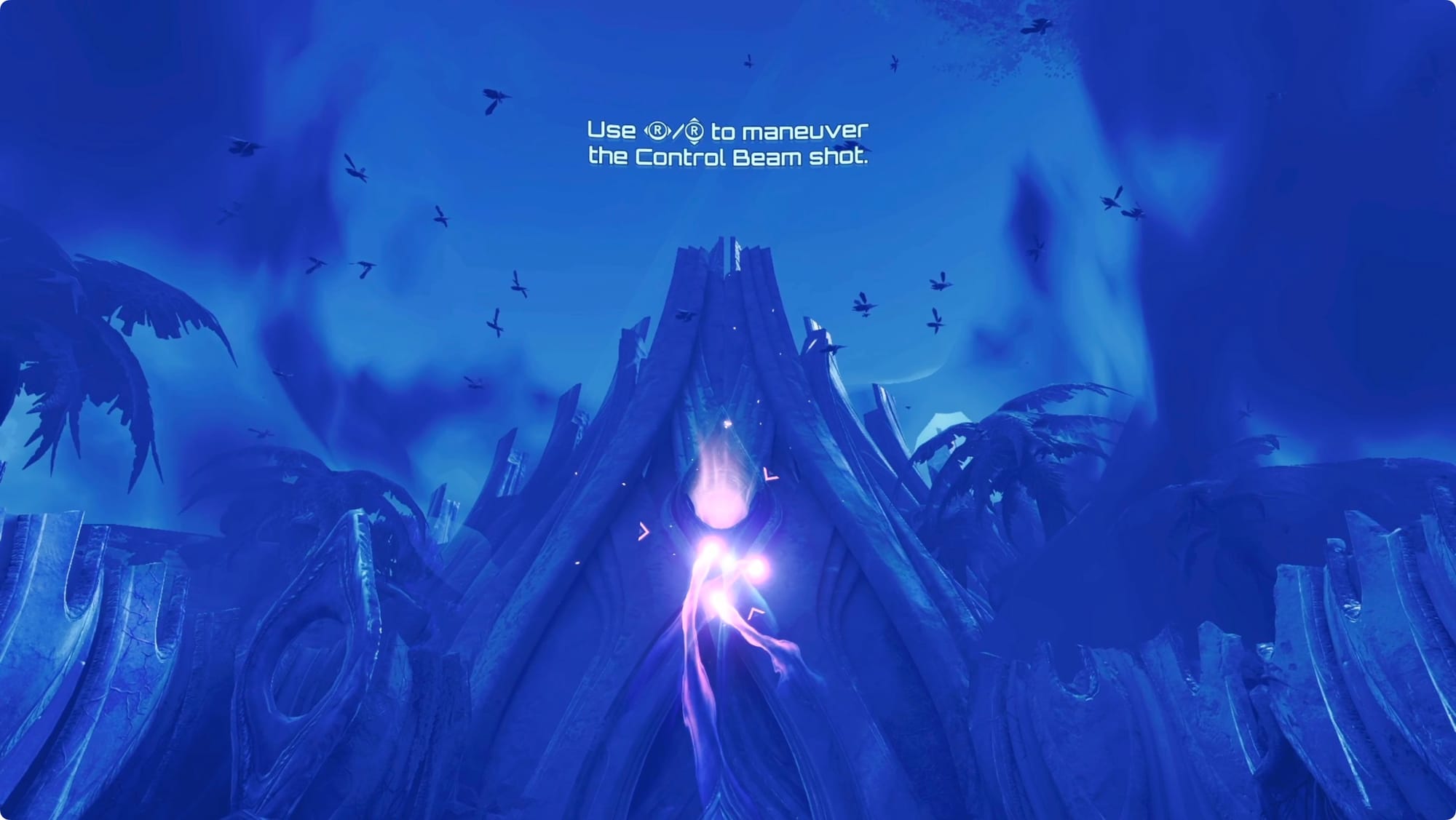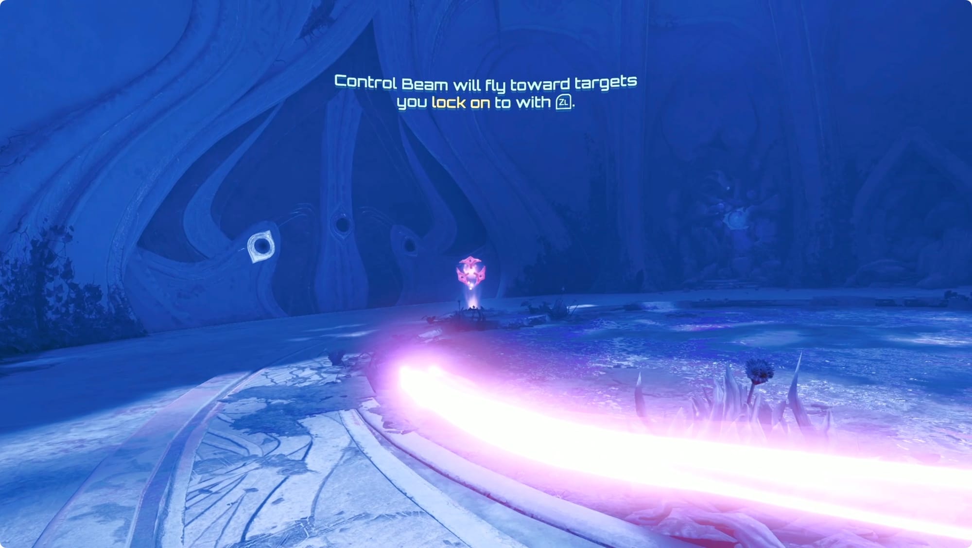 After Metroid Prime 4: Beyond’s opening sequence and prologue-slash-tutorial level, you’ll face off against the giant space pirate Aberax. (We're not doing a tutorial for that part because it's pretty simple and there's nothing to miss.) After the fight, in a series of events no one could have possibly foreseen, Samus gets blasted by a mysterious alien artifact and deposited on a planet that looks nothing like where she started.