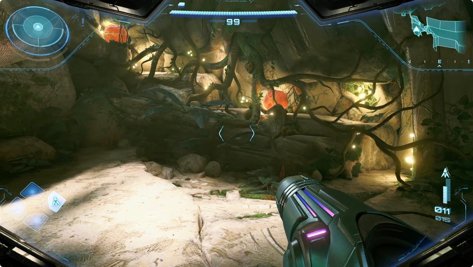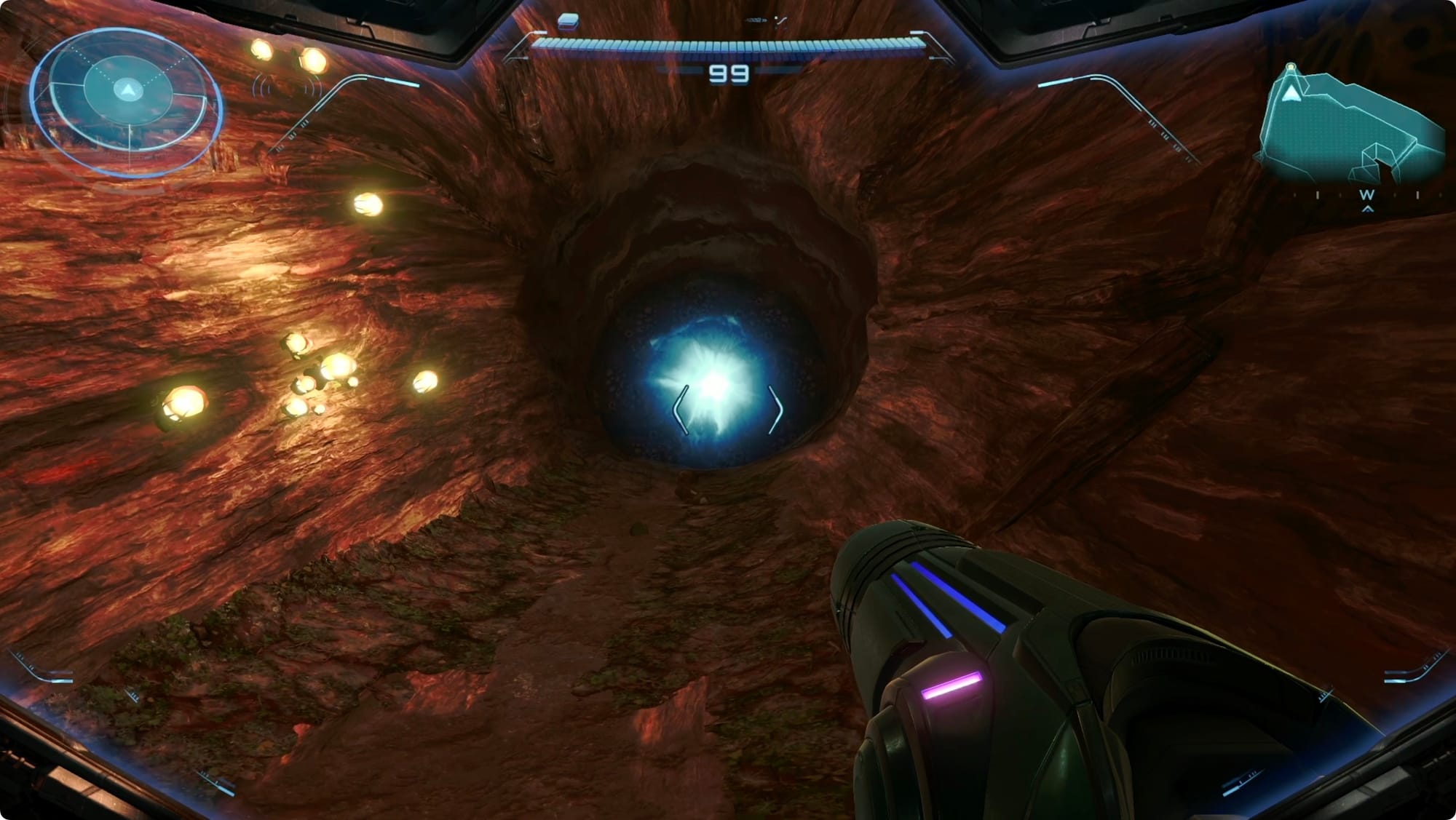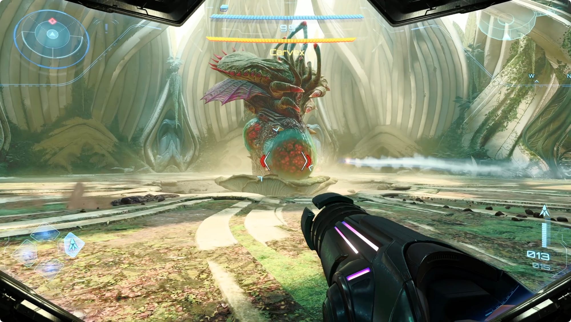 After Metroid Prime 4: Beyond’s opening sequence and prologue-slash-tutorial level, you’ll face off against the giant space pirate Aberax. (We're not doing a tutorial for that part because it's pretty simple and there's nothing to miss.) After the fight, in a series of events no one could have possibly foreseen, Samus gets blasted by a mysterious alien artifact and deposited on a planet that looks nothing like where she started.