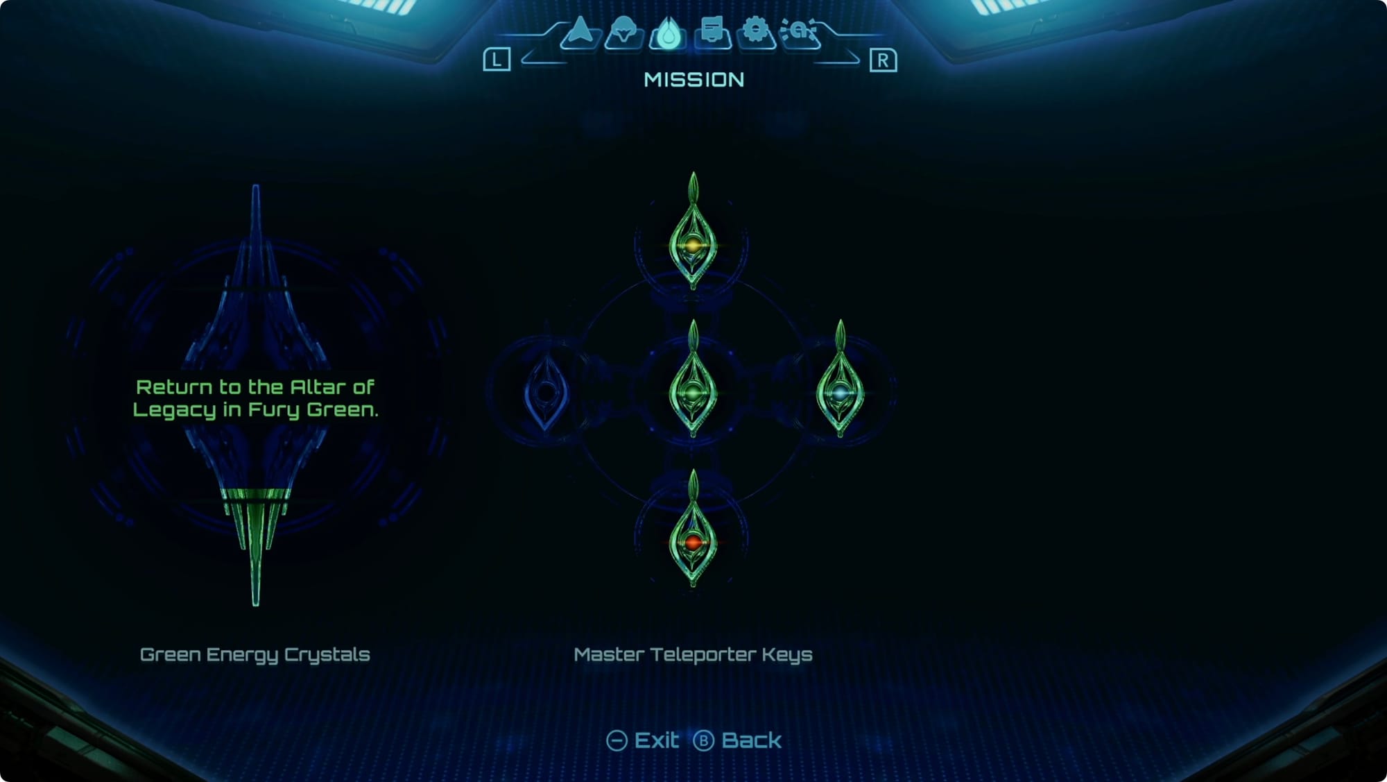 After that, you should have enough Green Crystals to upgrade your Arm Cannon back in Fury Green. You can check how much you have in the Mission menu — the Green Energy Crystals is just a vertical gauge and you’re looking to fill it about 25%. (If you’re short, you can always go whip some shitties in the desert to collect some more — it won’t get you a lot, but it can be enough to push you over the edge.)