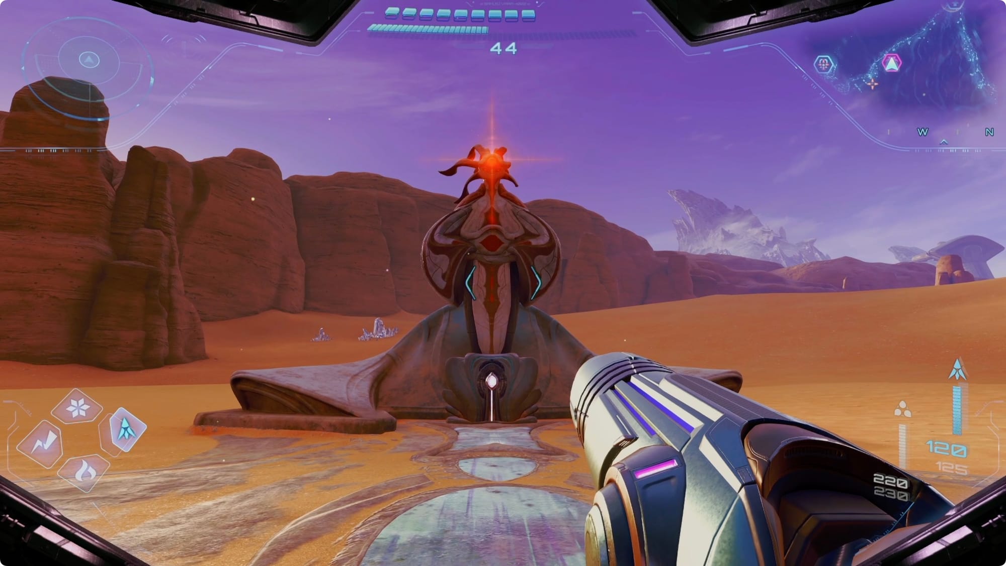 Blast the ice off of the statues with glowing crystals, and then scan them to open their storage. Grab the Psychic Motes out of each, and place them in the base of the statue.