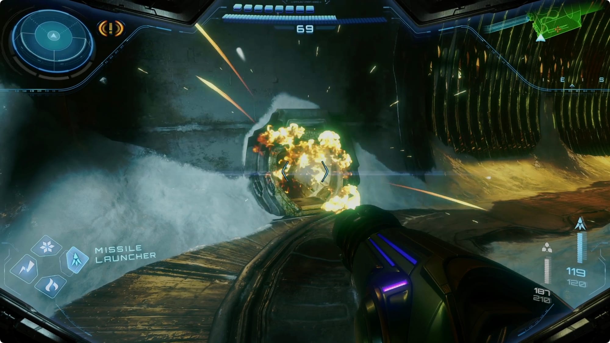 At the Cliffside, scan the window on your right to get VUE to weaken it. Missile through.