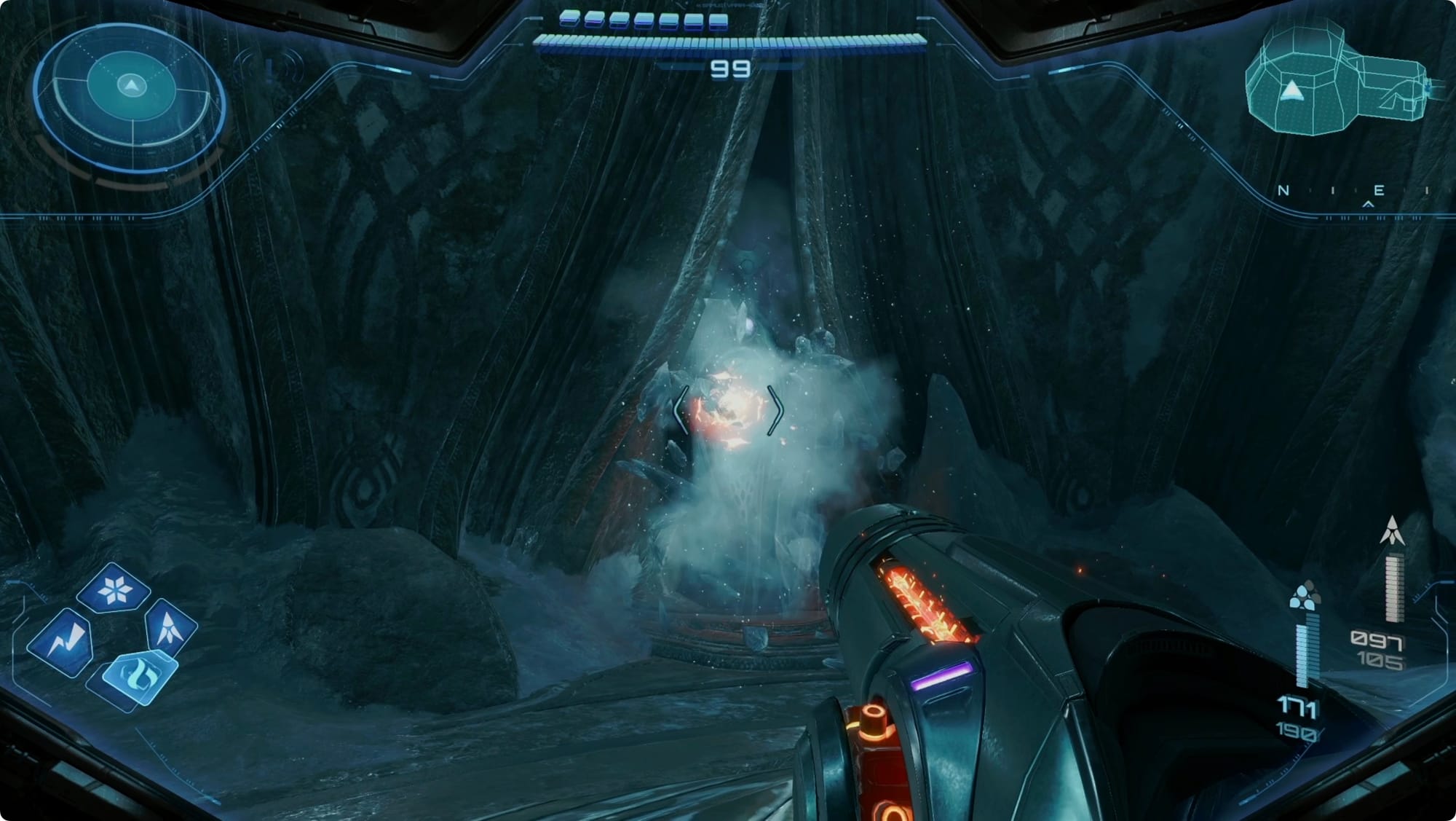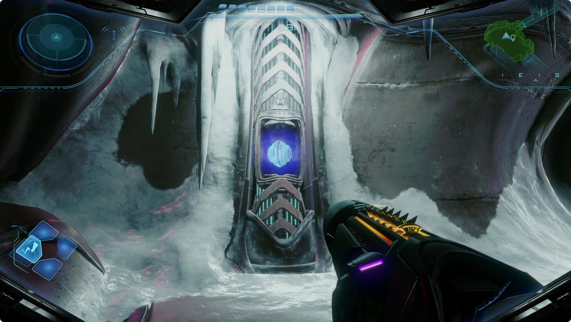 Head through and grab the Charged Ice Shot.
