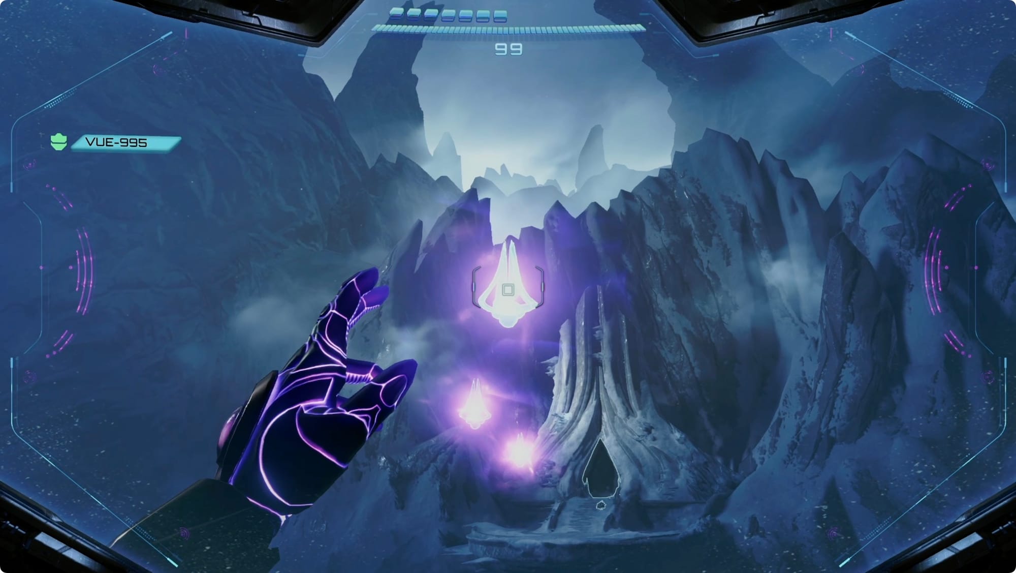 Cross the Ice Canyon the same way you did the first time. At the halfway point, look on your right for some Psychic Grapple Points to manifest. Use them to reach the Energy Tank.