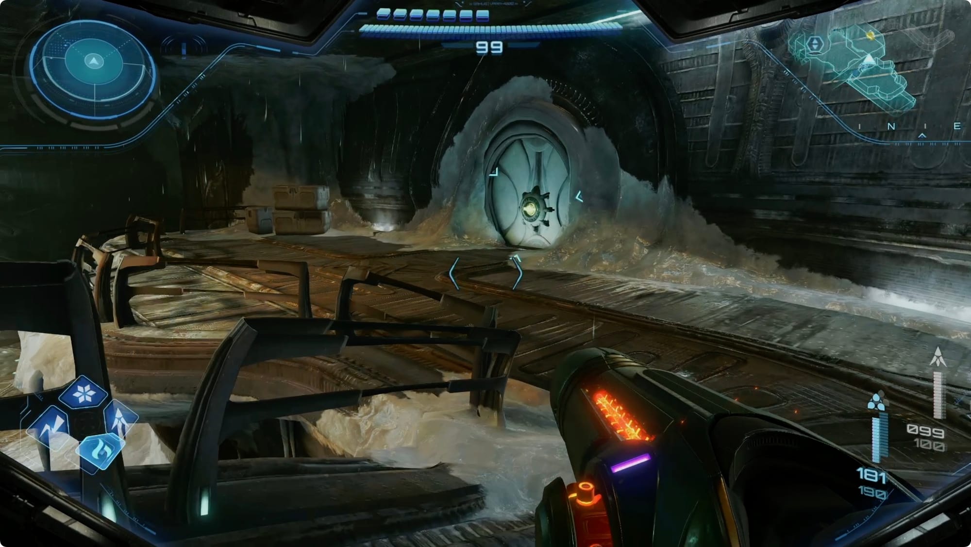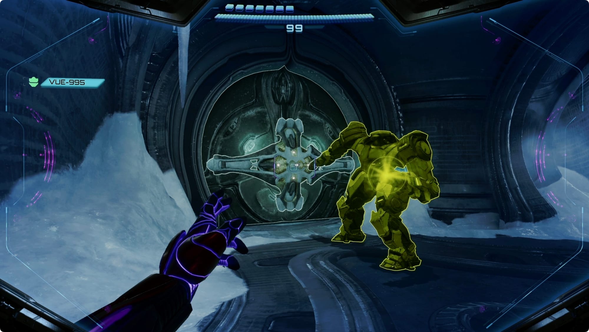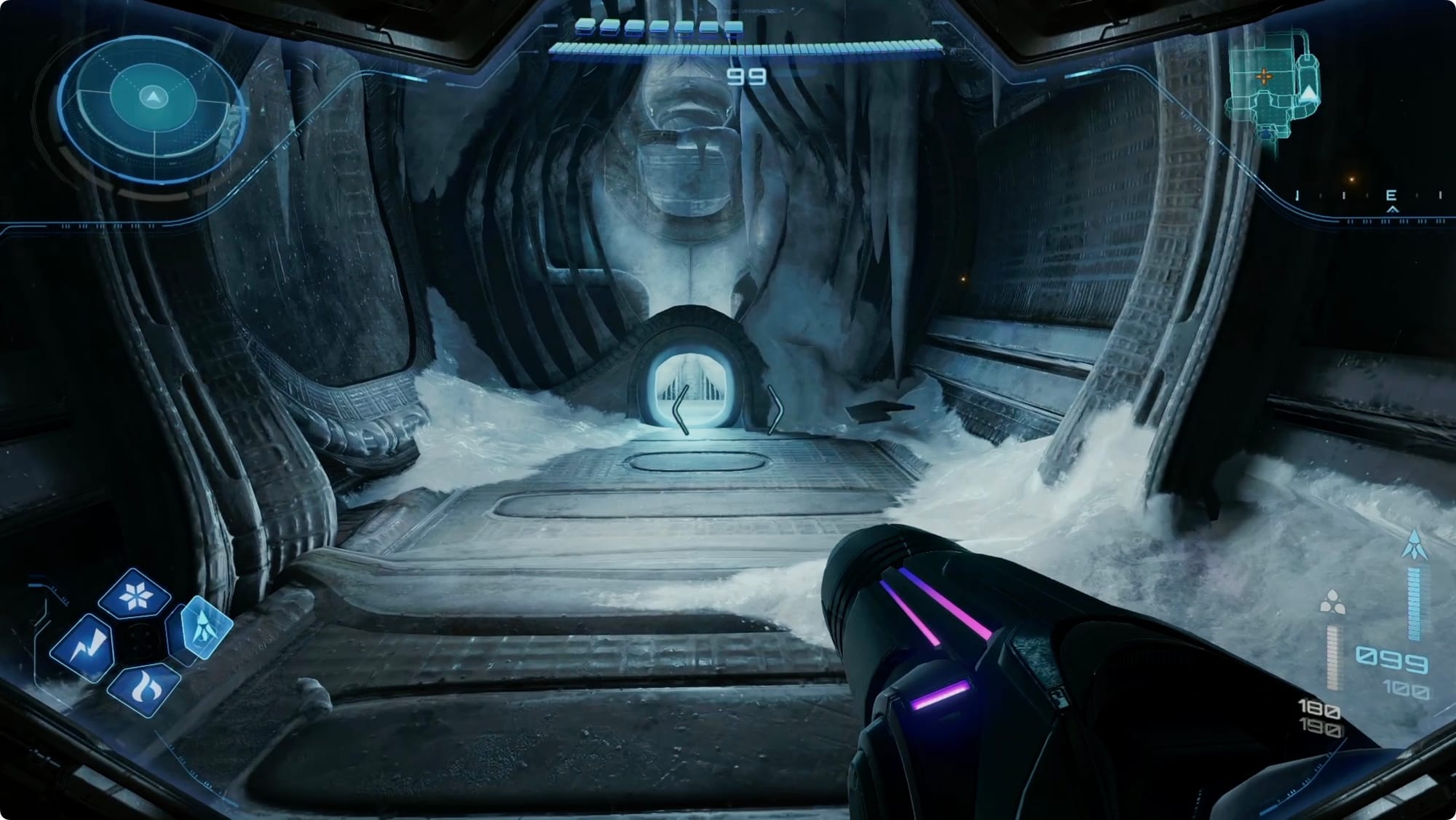 That should be everything, so use the new Morph Ball elevator to get back to the Control Room, and back out to the Snowfield. Remember to use the mini cargo launcher to shoot back to the entrance.