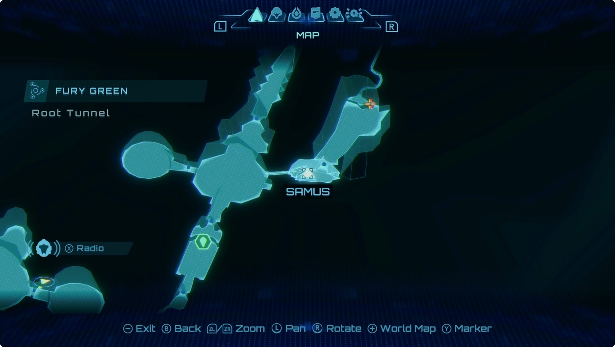 Instead, head for the Save Station in the Resin Creek — the one due north of Base Camp. When you reach the mark on your map, look for the weird fruit thing in the wall. Morph Ball, jump, and then bomb it to reveal a Missile Expansion.