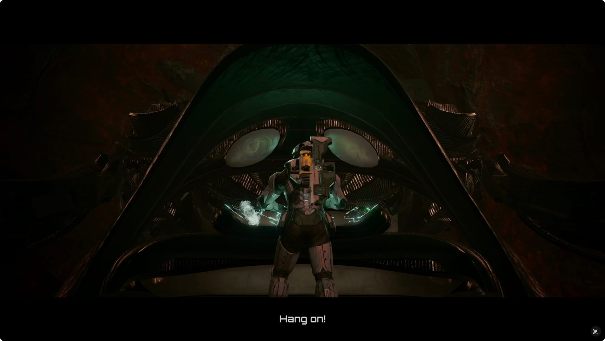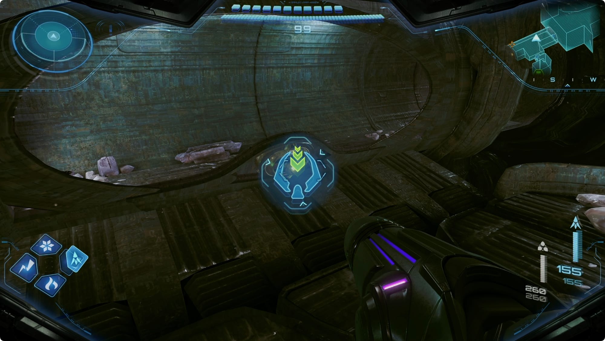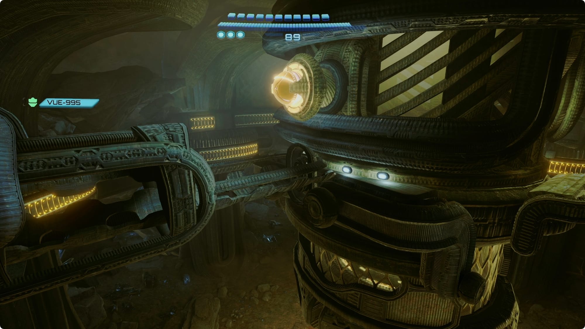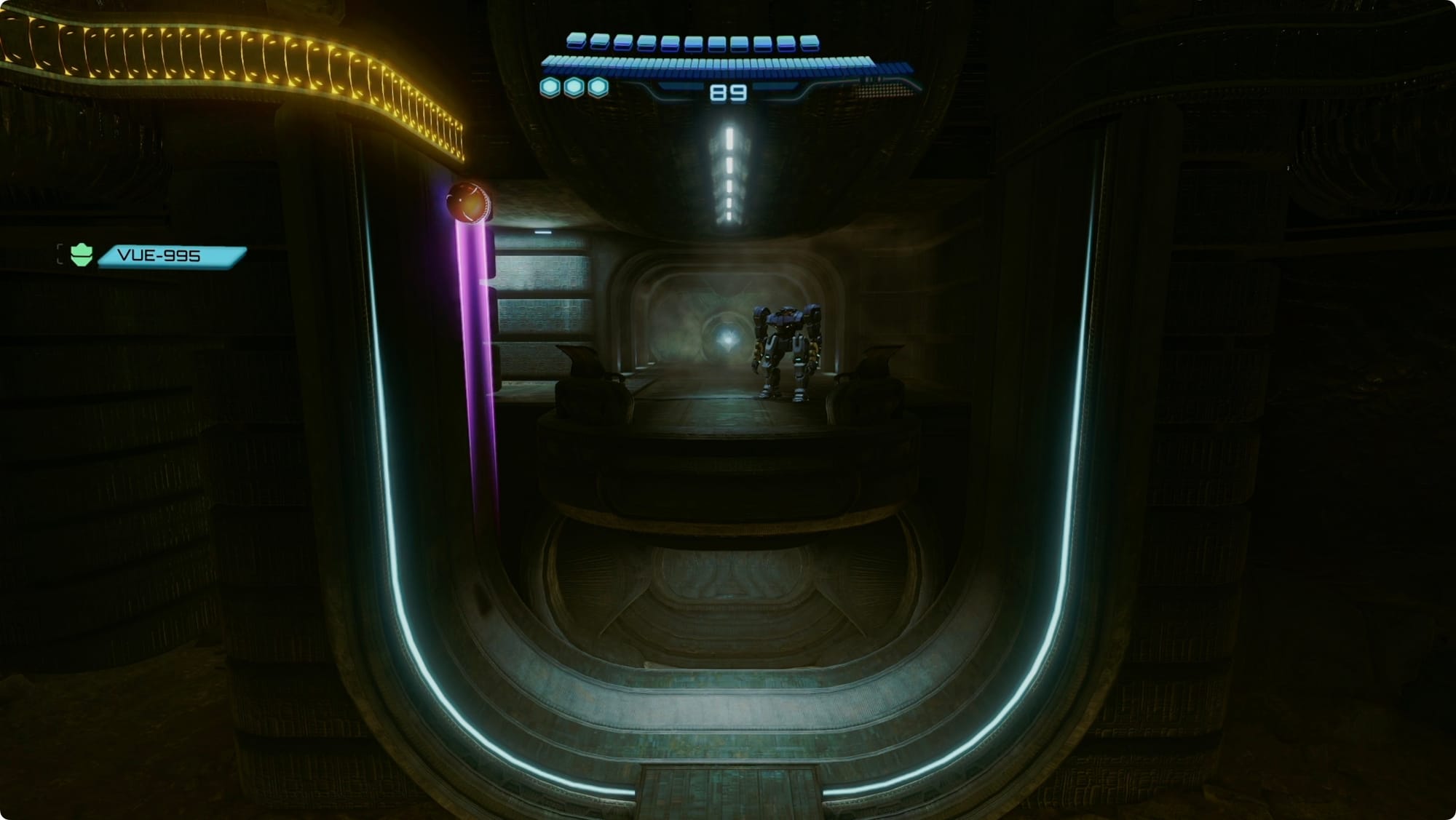 After the fight, there’s a weird Griever Gate-like wall to scan. VUE should take care of it when you scan it (it took two tries for me). In the next room, skip through the Easing Tunnel (don’t bother with the lock on the right side yet — shooting it will only draw Grievers).