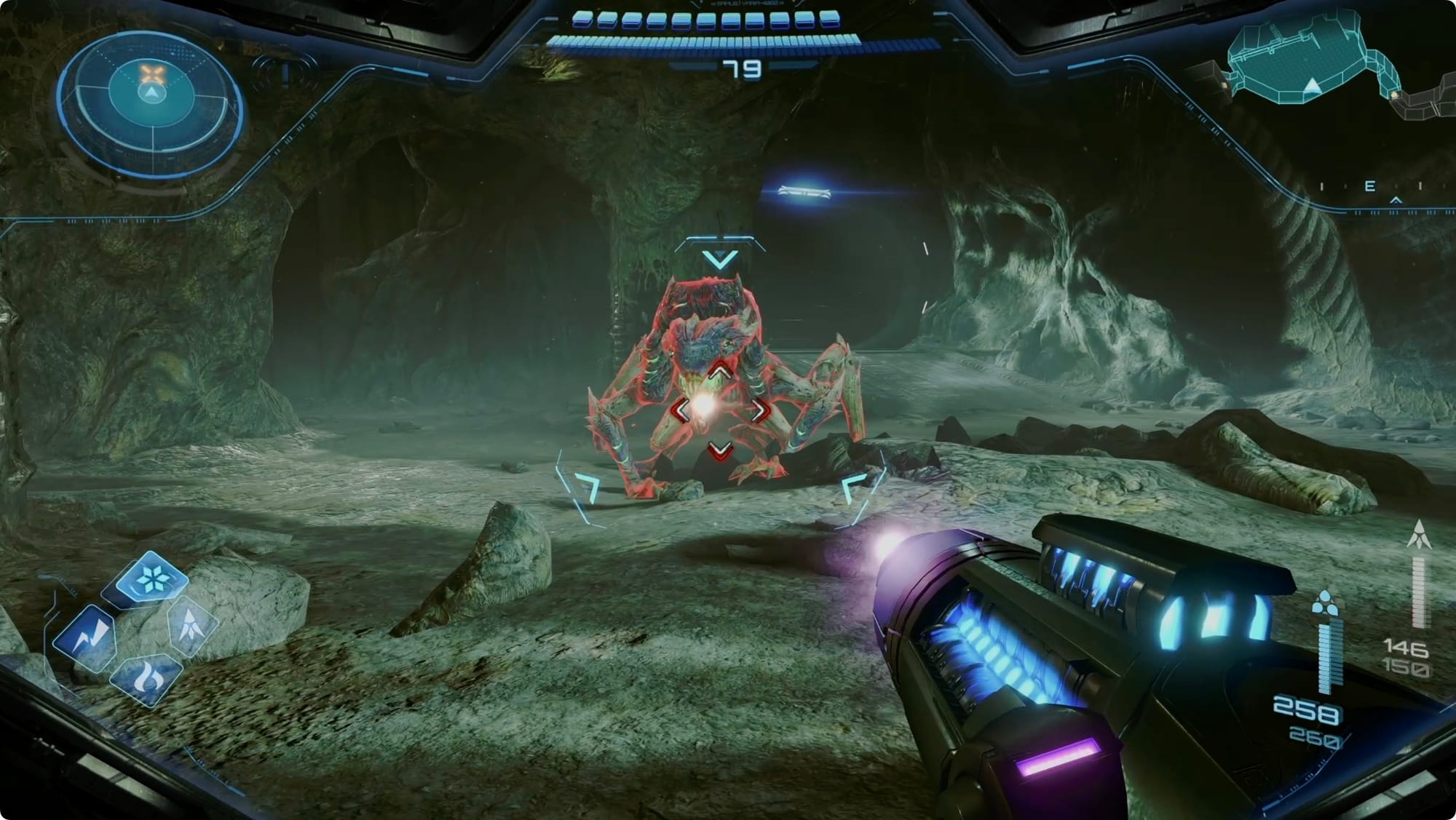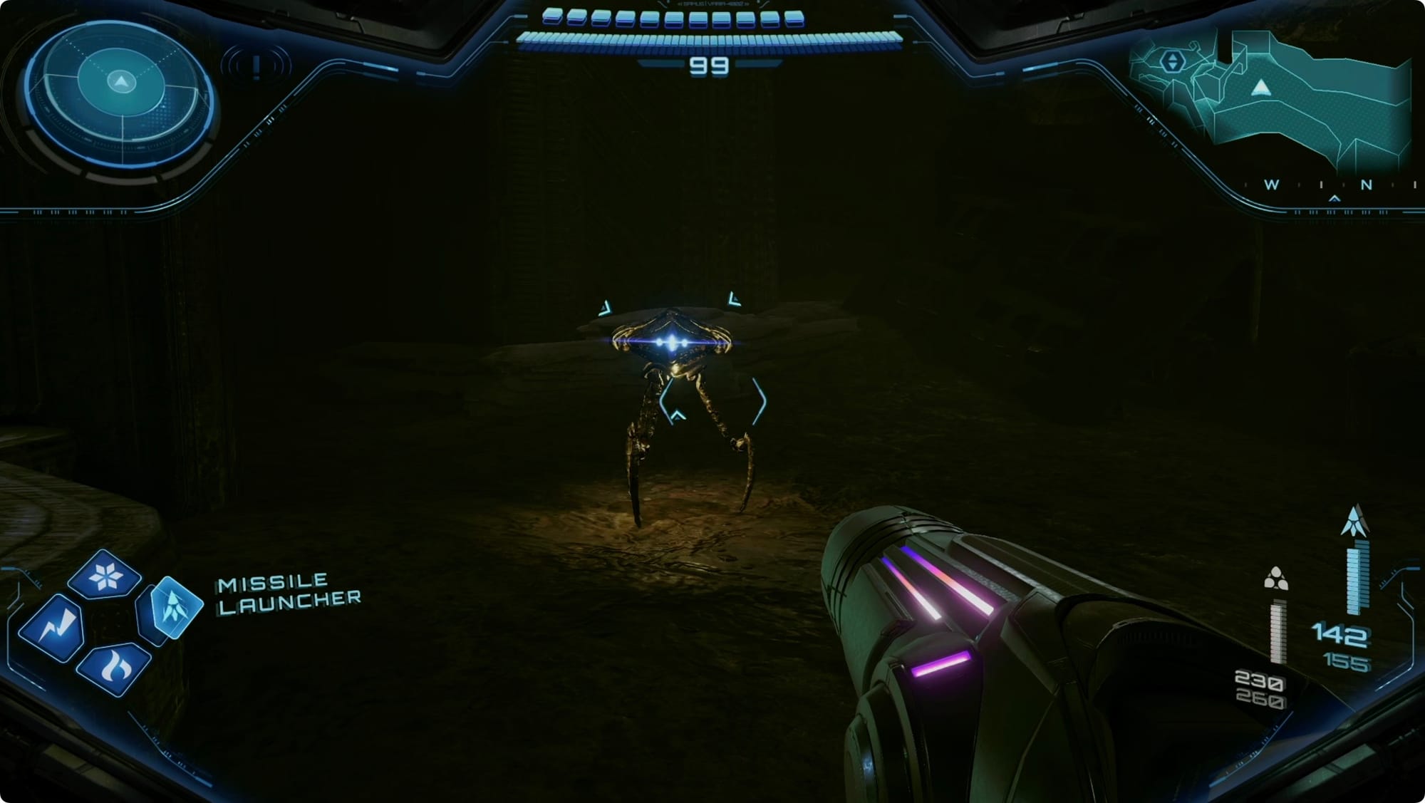 Clear the Grievers that show up, and then scan the cannon frame to get VUE to punch it. Missile through the damaged wall to claim the Super Missile.