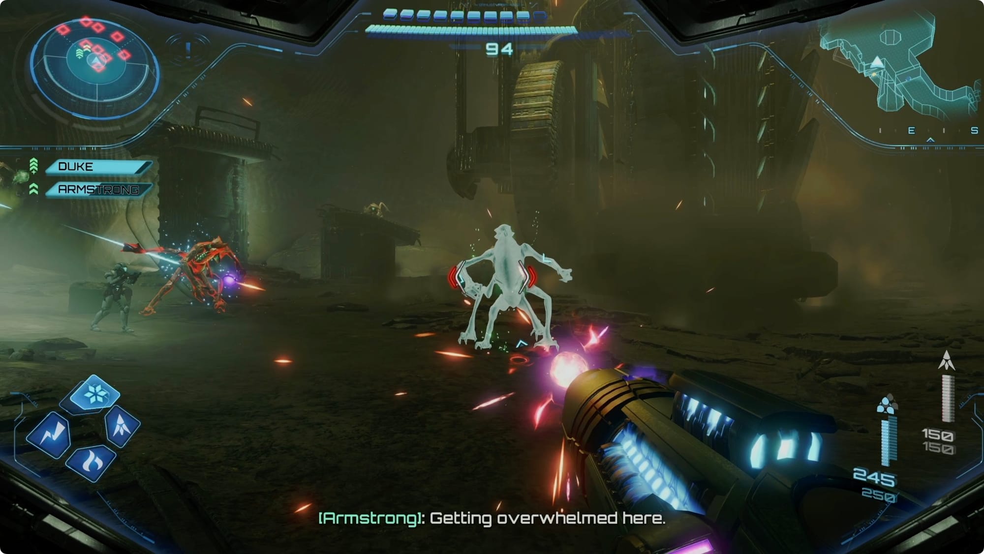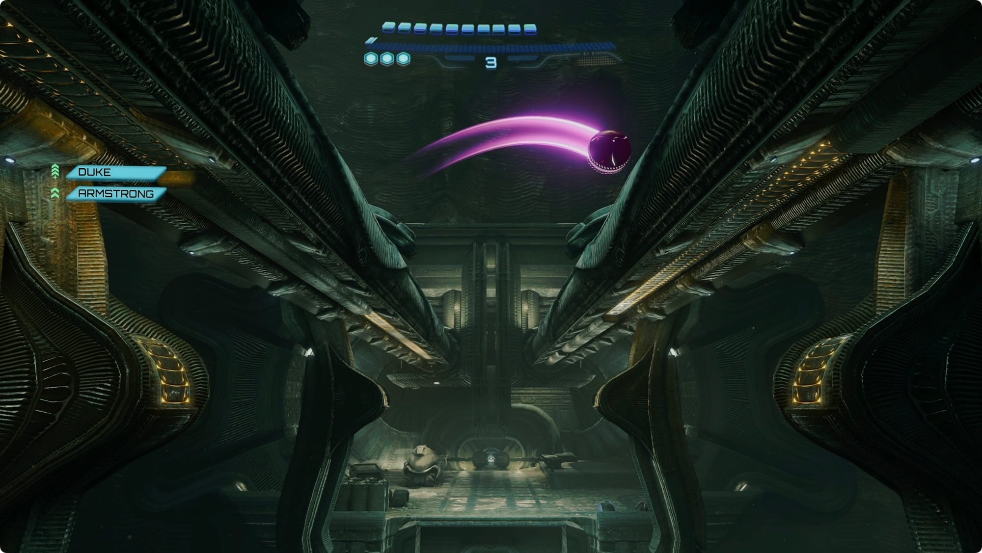 You’ll get jumped by a mob of Maul Grievers. Luckily, those Arm Cannon upgrades make pretty short work of them. Unluckily, some of them glow green and explode. Take Duke’s advice and Freeze Shot those.