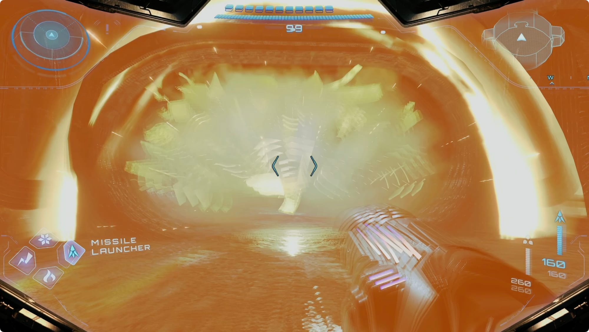 When the bombs go off, it’ll rear up a little and expose its belly. Charge up a Super Missile or two to hit the glowing weak point and follow it up with a few more regular Missiles.