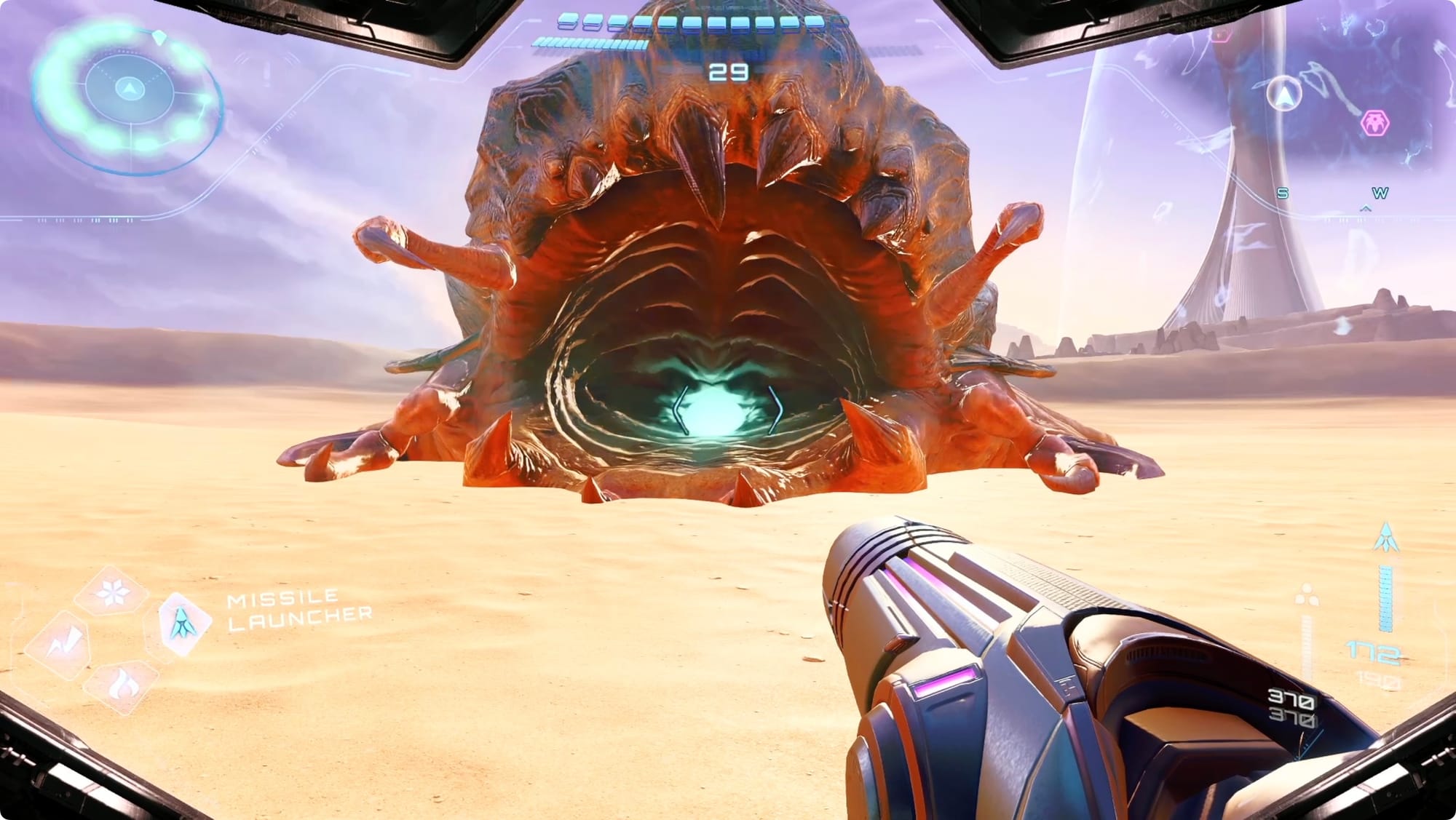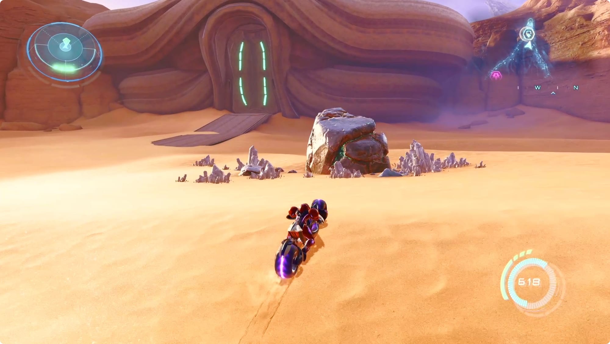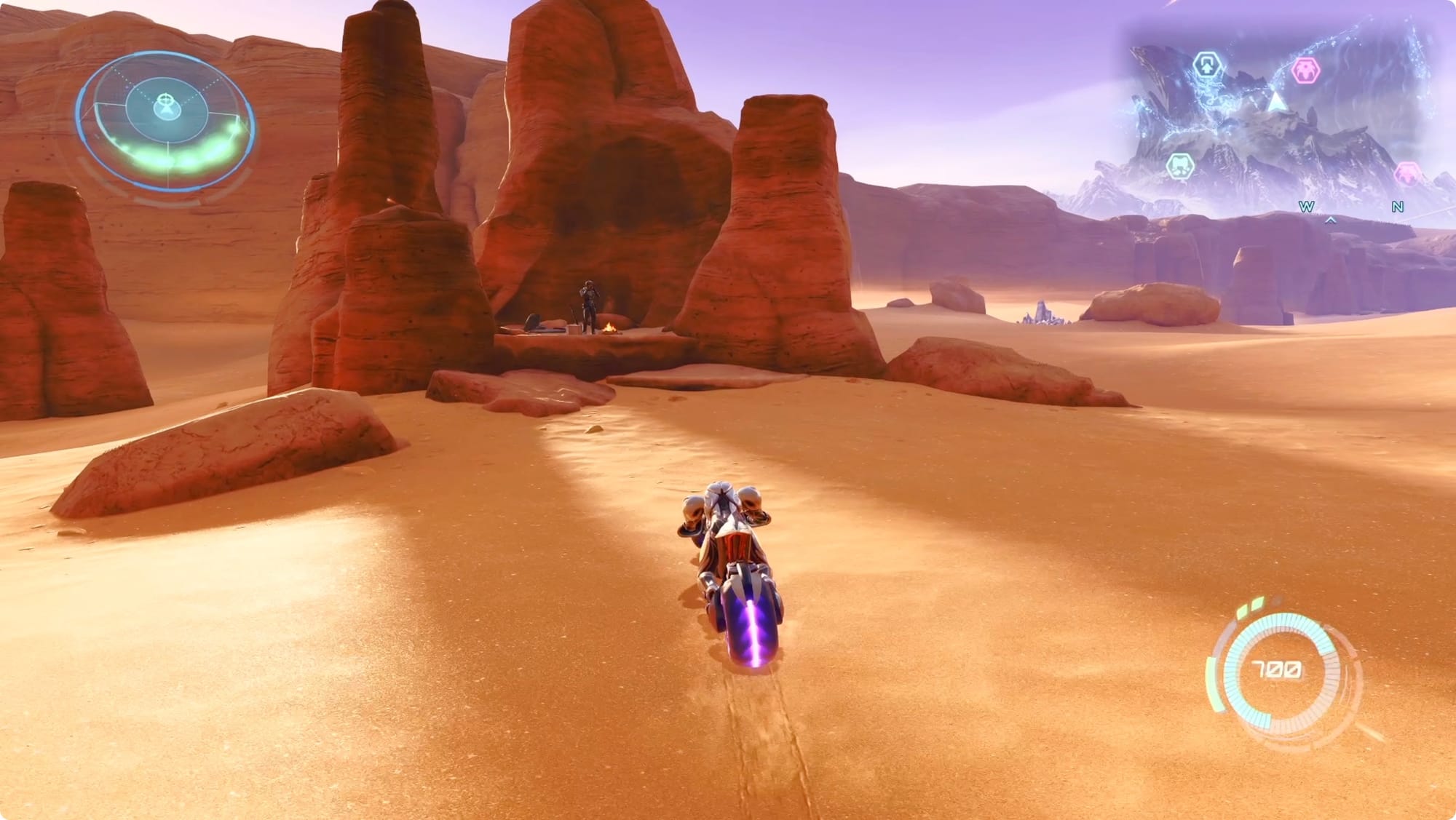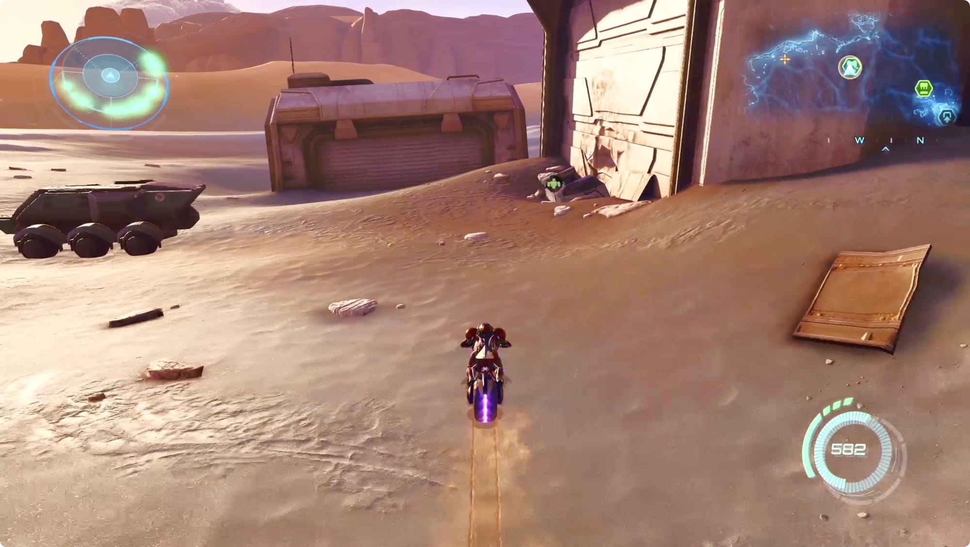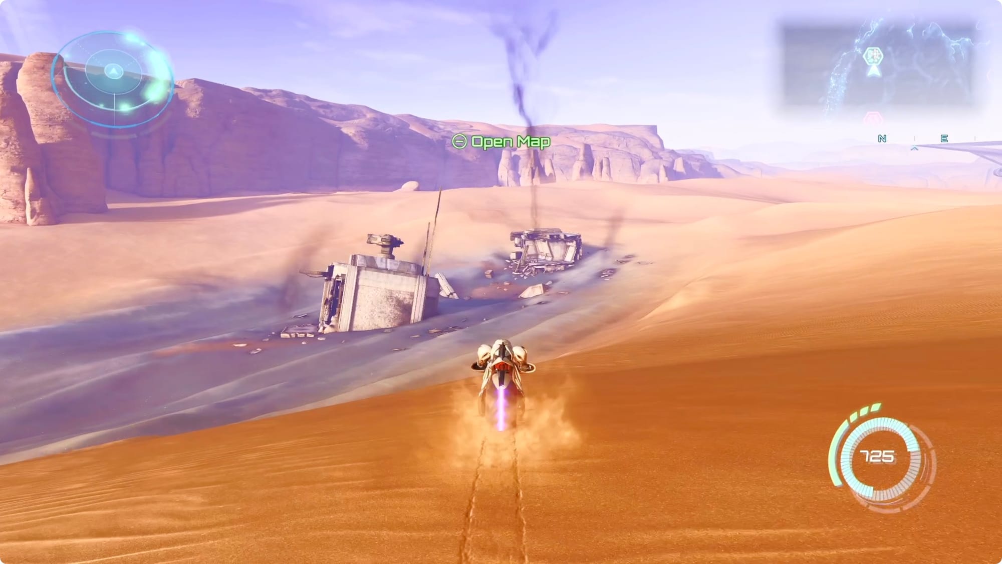 Back down on the ground, look for the crate that’s flashing. When you get close, though, Shai-Hulud shows up and swallows it. Hop on your bike and chase the dot on your minimap.