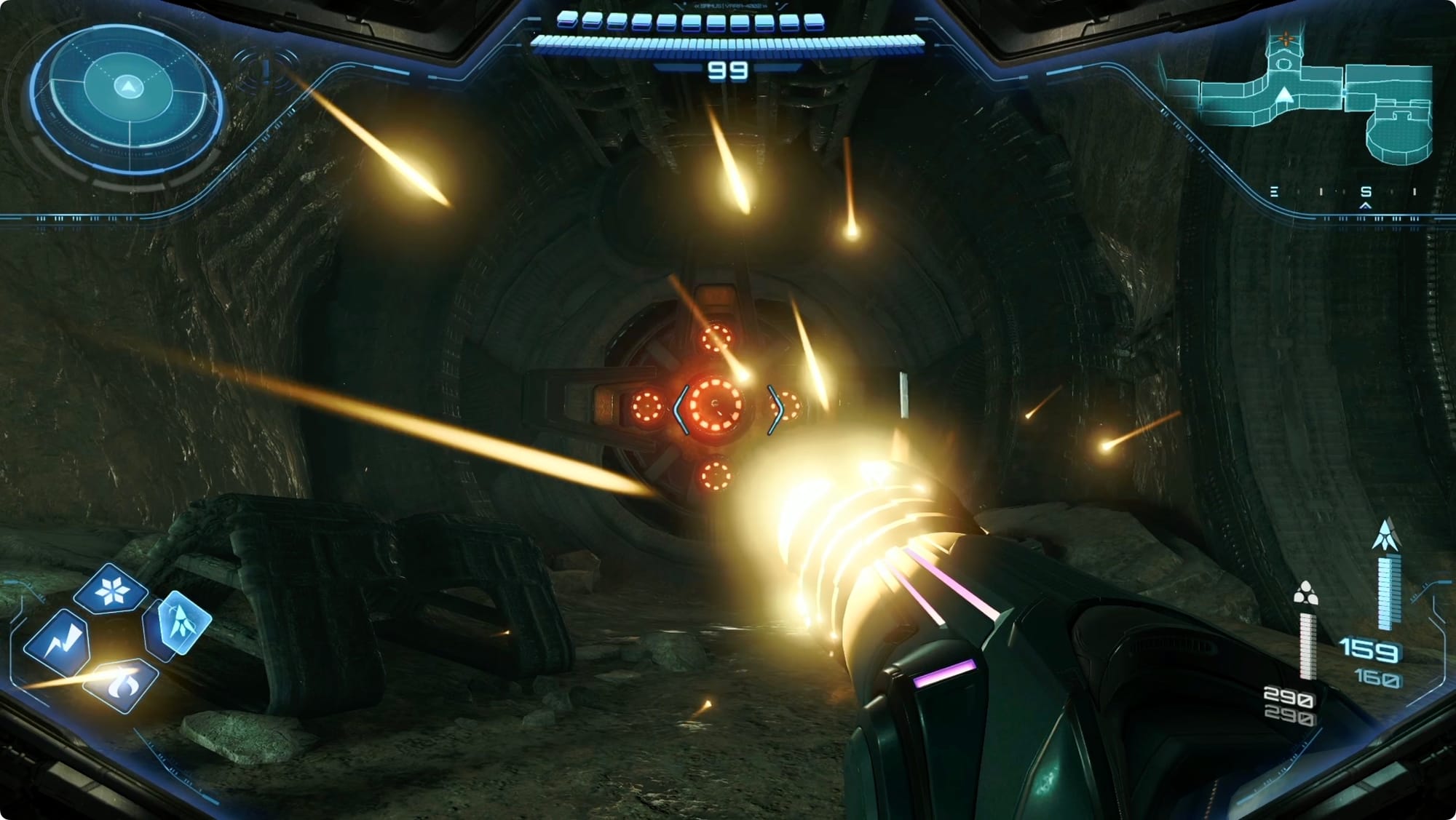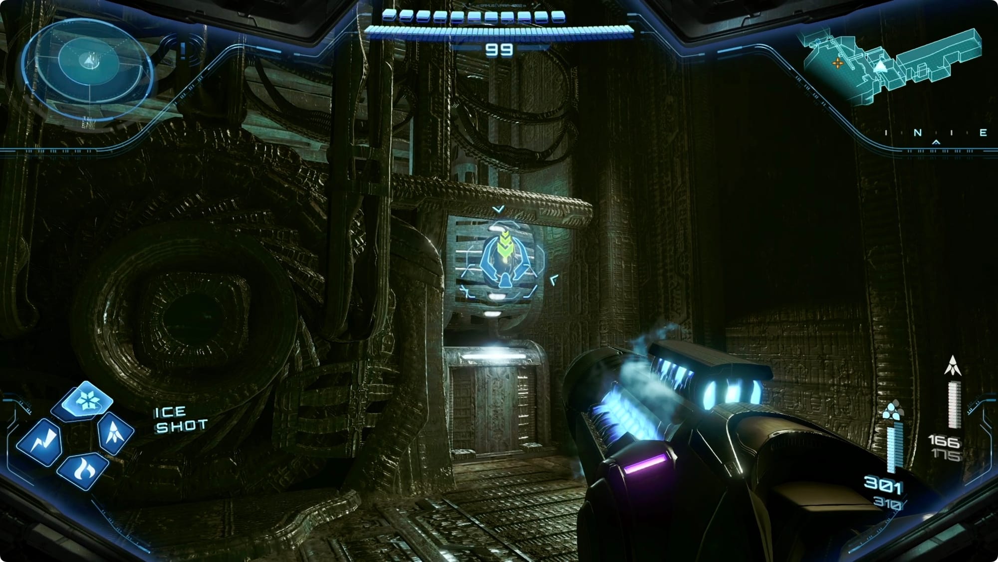 Scan the Maintenance Tank Shooter (Bomb Slot) on the west wall and then Bomb it to return to the Entry Bay (it’s slightly easier than backtracking). Also, you can save there.
