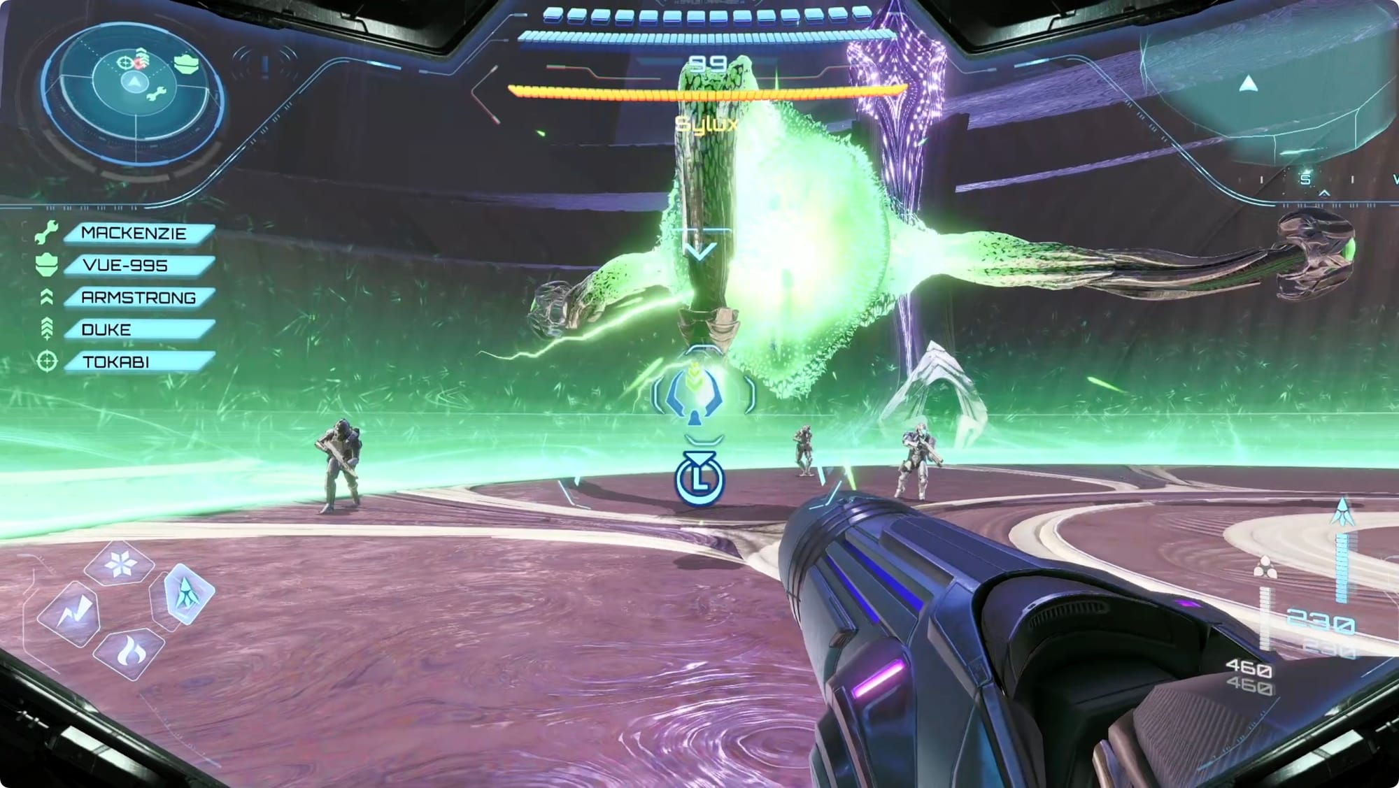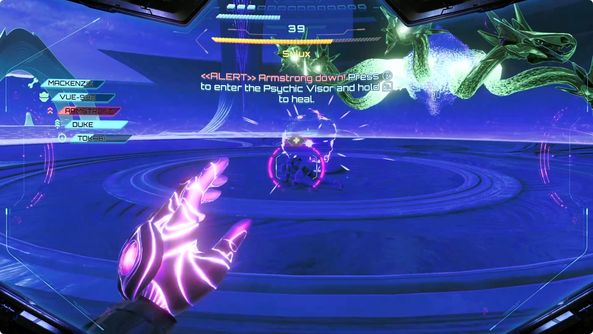 Throughout these phases (especially the Thunder phases), your primary goal is to make sure the rest of your crew doesn’t die. The second you see someone’s health bar go red, switch to the scanner and go target them to get them back on their feet.