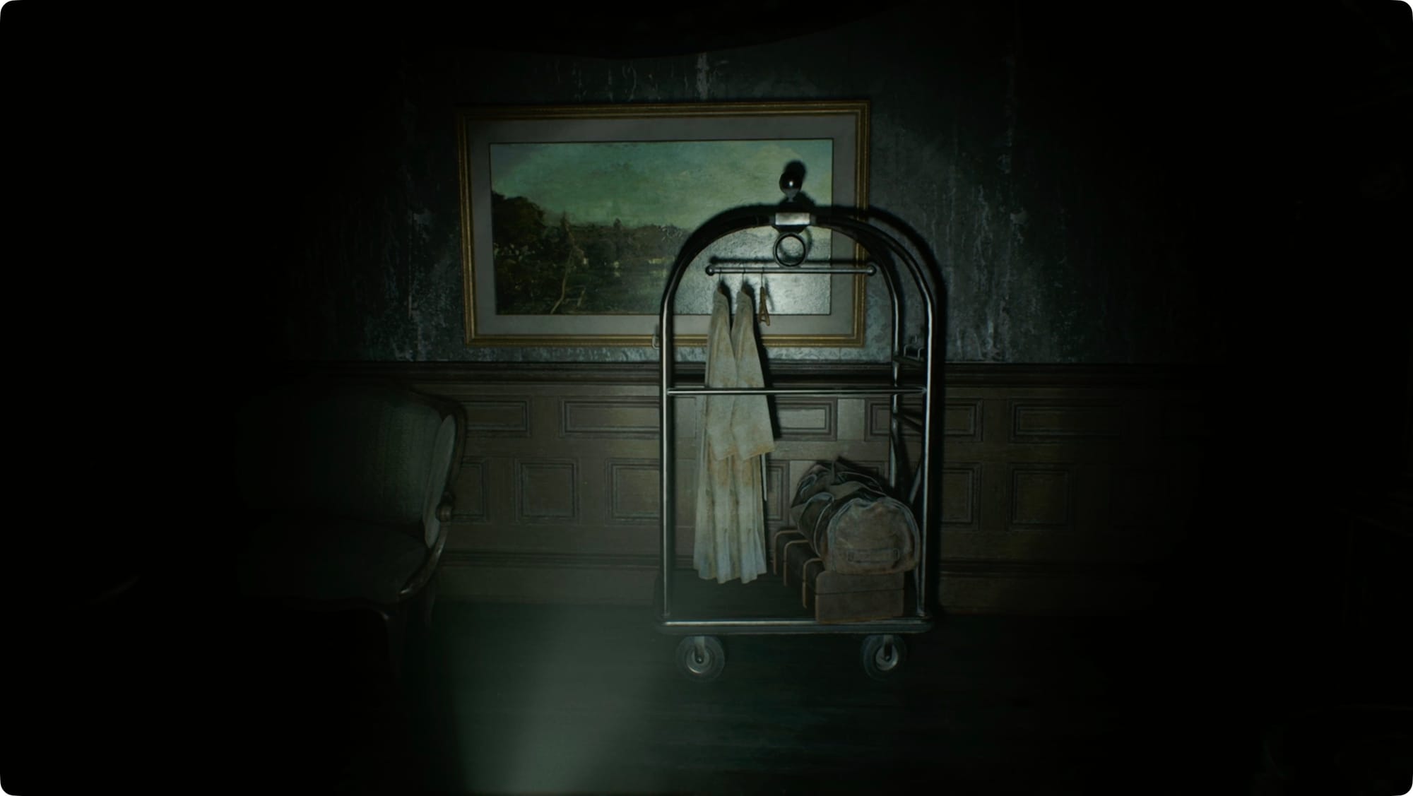 Head all the way back down to the lobby and cross over to the painting from the flashback. Move the cart and grab the package Grace’s mom left. Inside it, you’ll find Alyssa’s Journal and an unnamed (yet) disk.