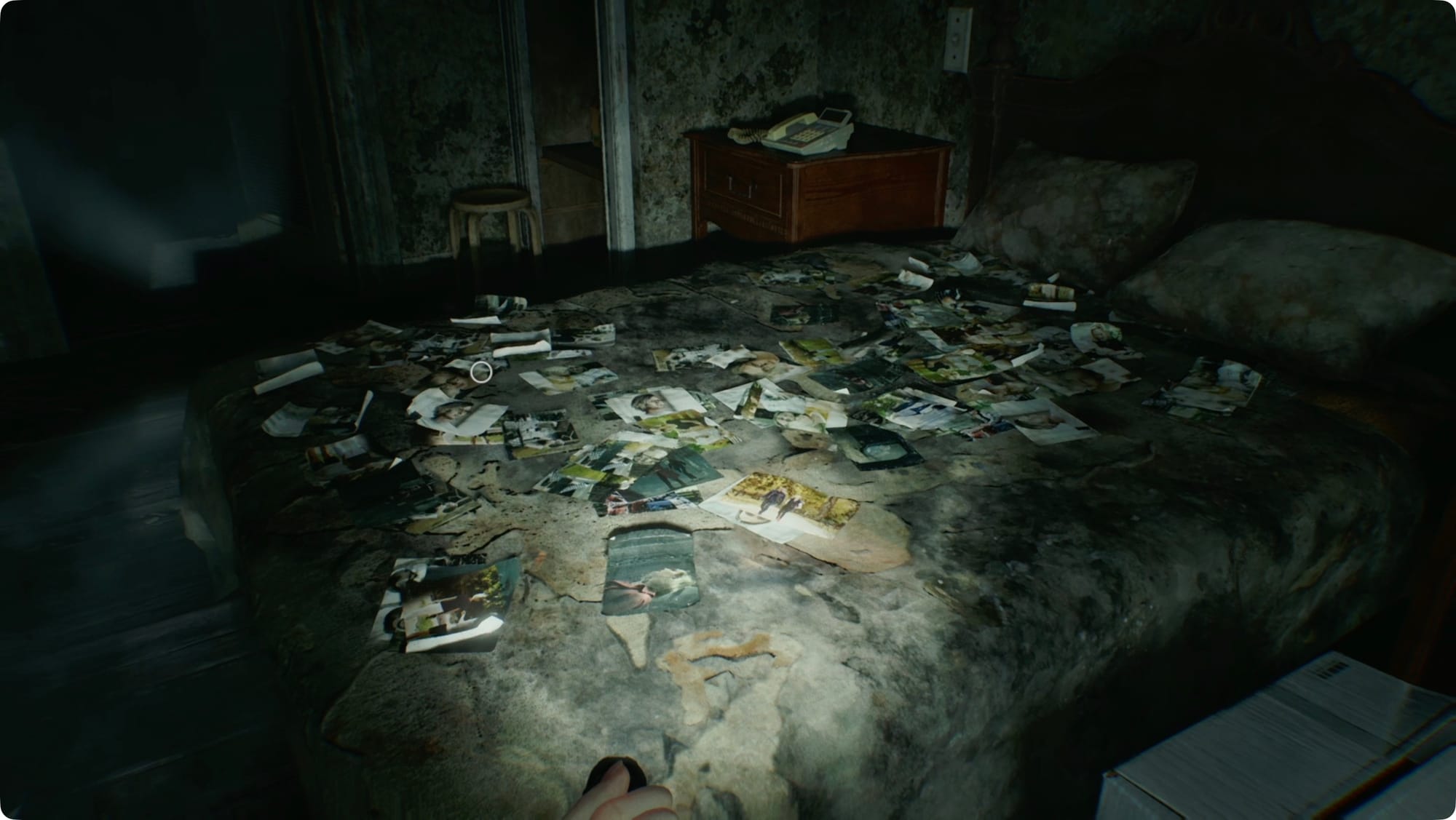 Examine the photos to take a closer look, and then examine the special(?) photo in the upper right to trigger a flashback cutscene.