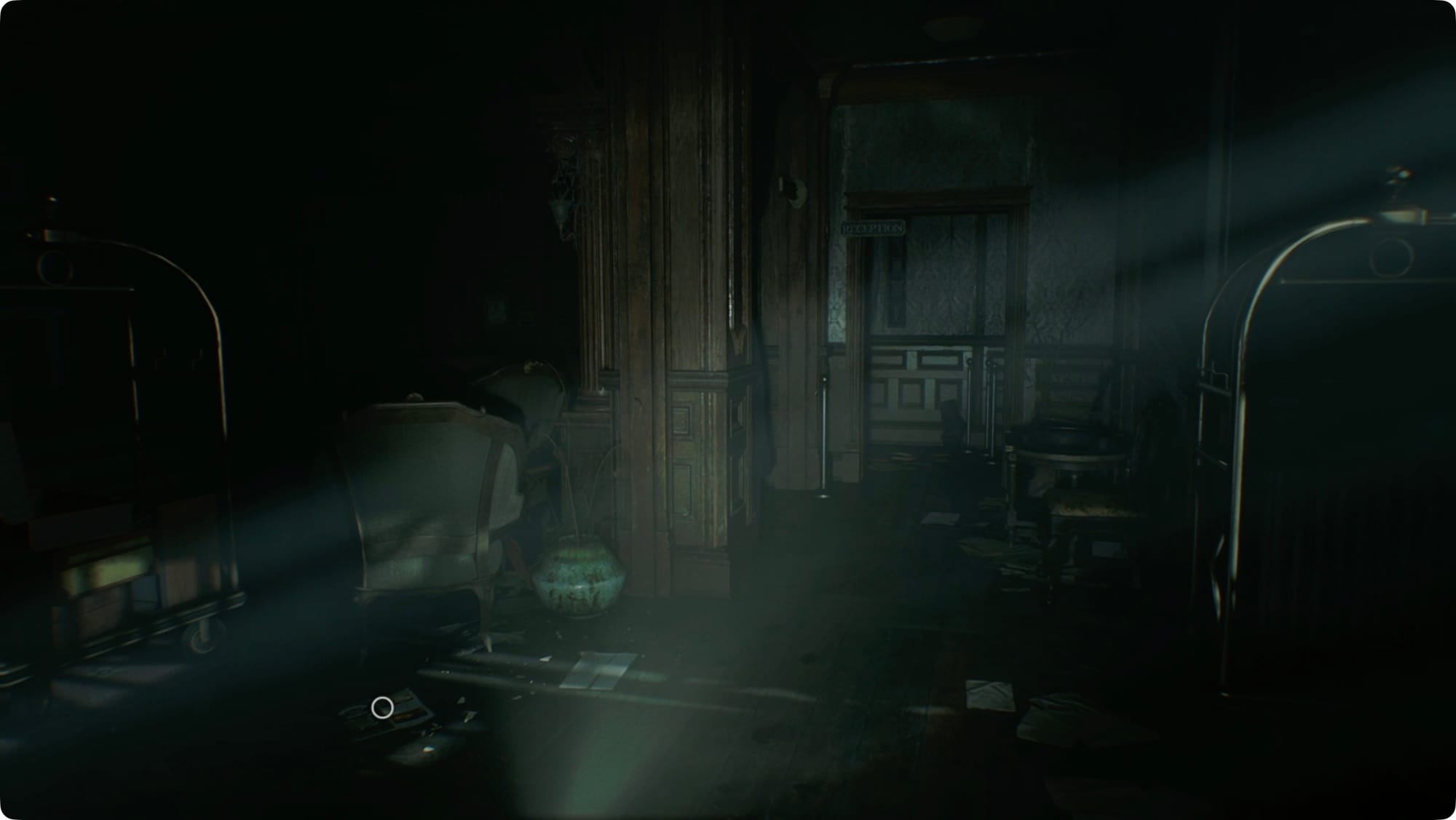 Inside, there’s nothing in the lockers, but you’ll find the Notice of Closure in the desk at the back and the Wrenwood Hotel Floor Plan on the wall. There’s nothing else in the Lobby, so take a right when you exit the office and head up the stairs. Take them all the way around to the Rec Room.