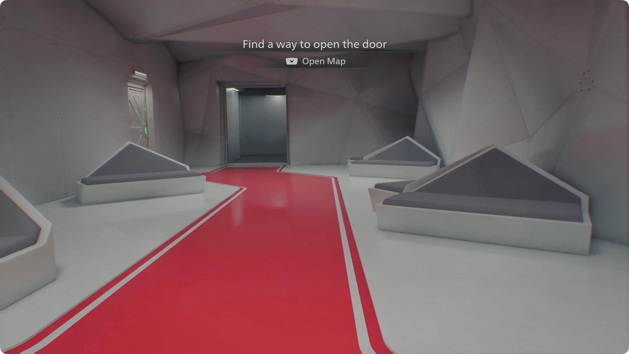 Interact with the control panel and then head through the door on the south wall.