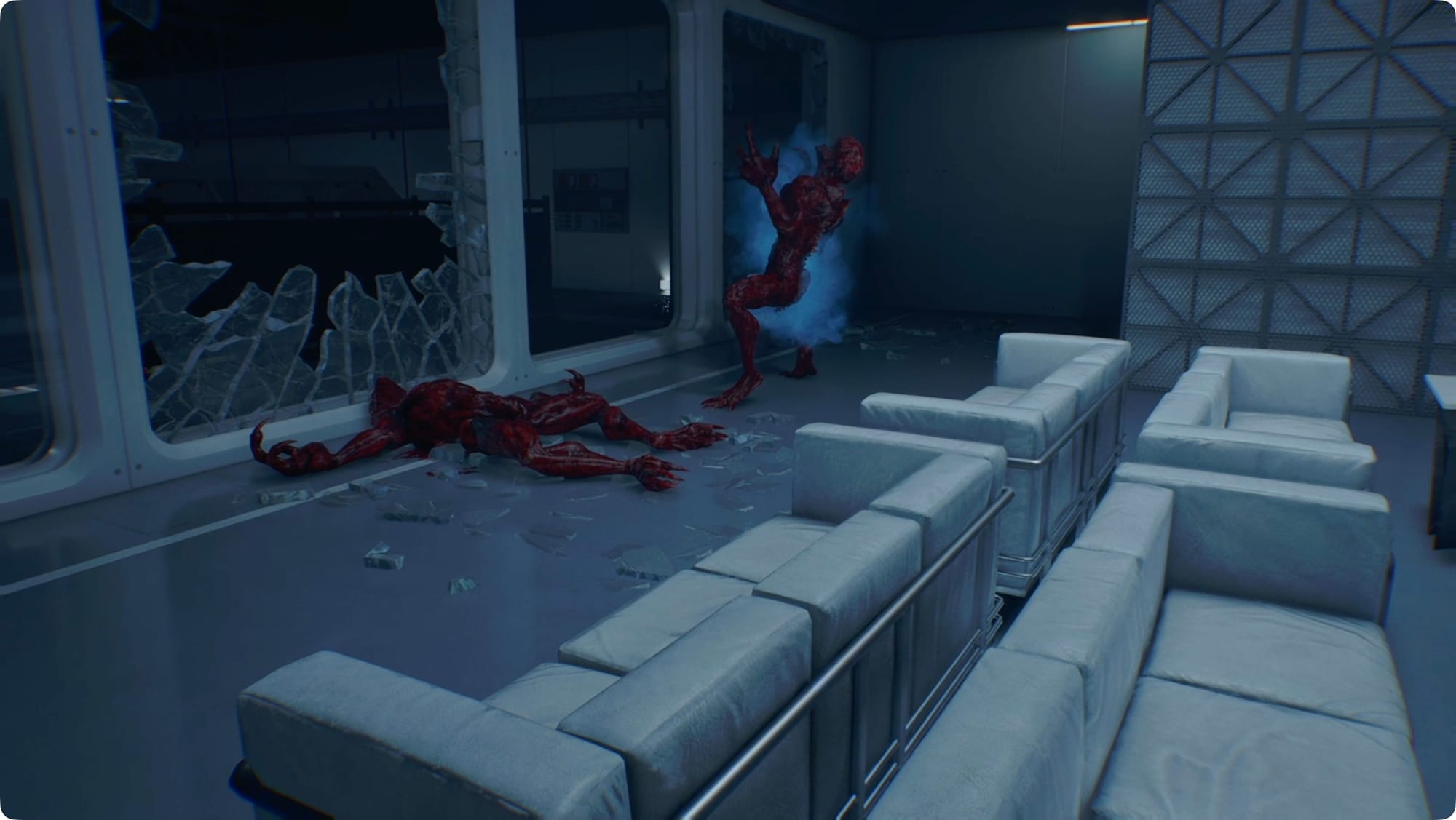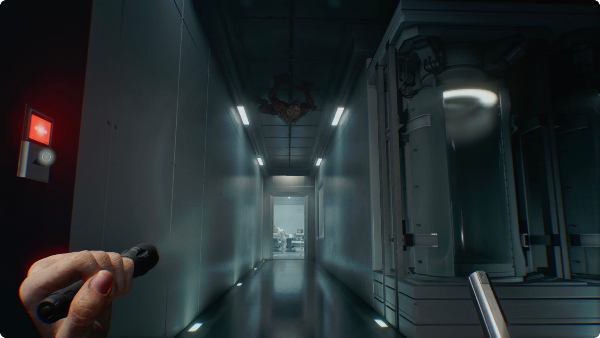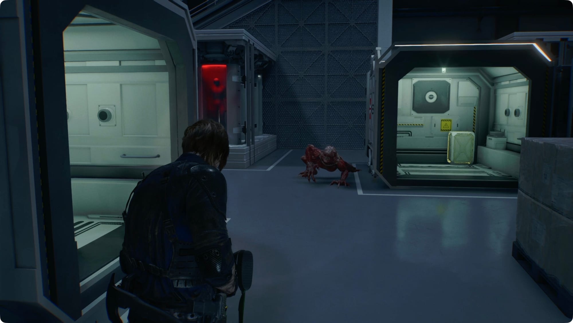 Follow the hall around and then past the room we need. As you cross the catwalks, you’ll have to deal with a few Lickers. At the far end, drop down to the floor.