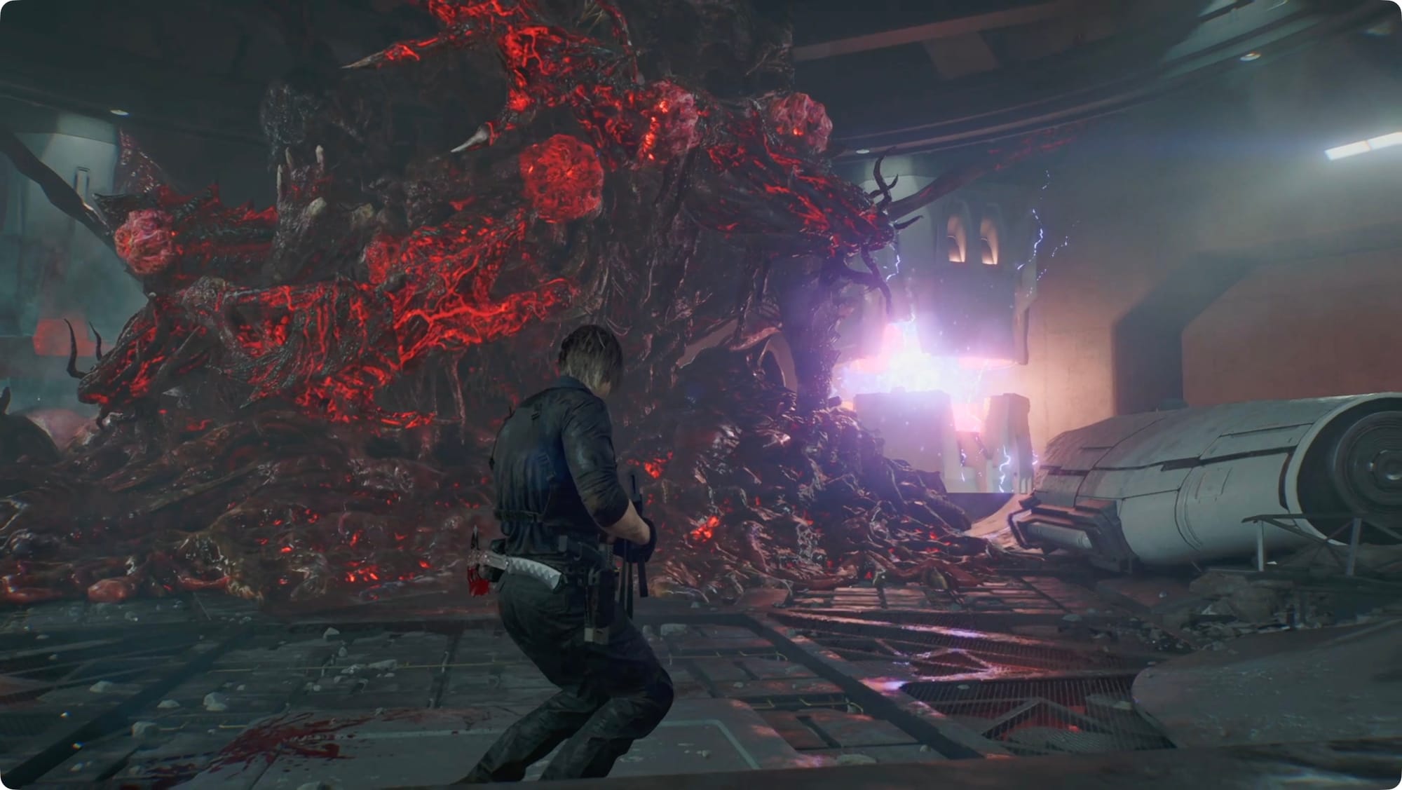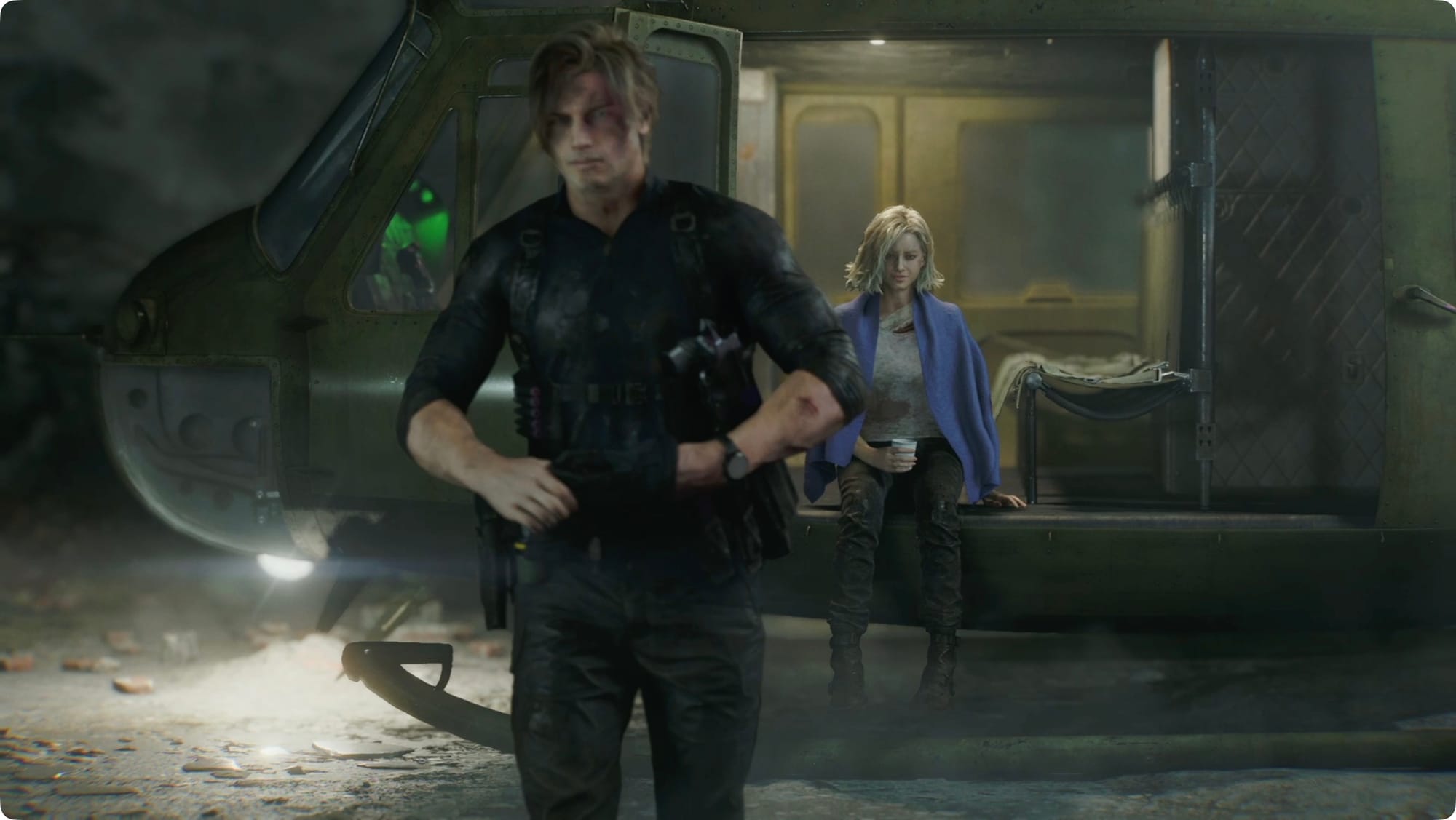 Head north and up the stairs. Take a left and go through the door for a villain monologue. After Leon enacts the worst-planned escape in history, you’ll pick up as Grace.