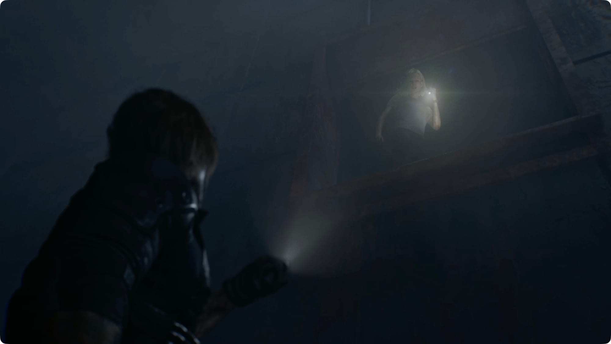 As Leon a few minutes in the past, climb the ladder out of the Dump.