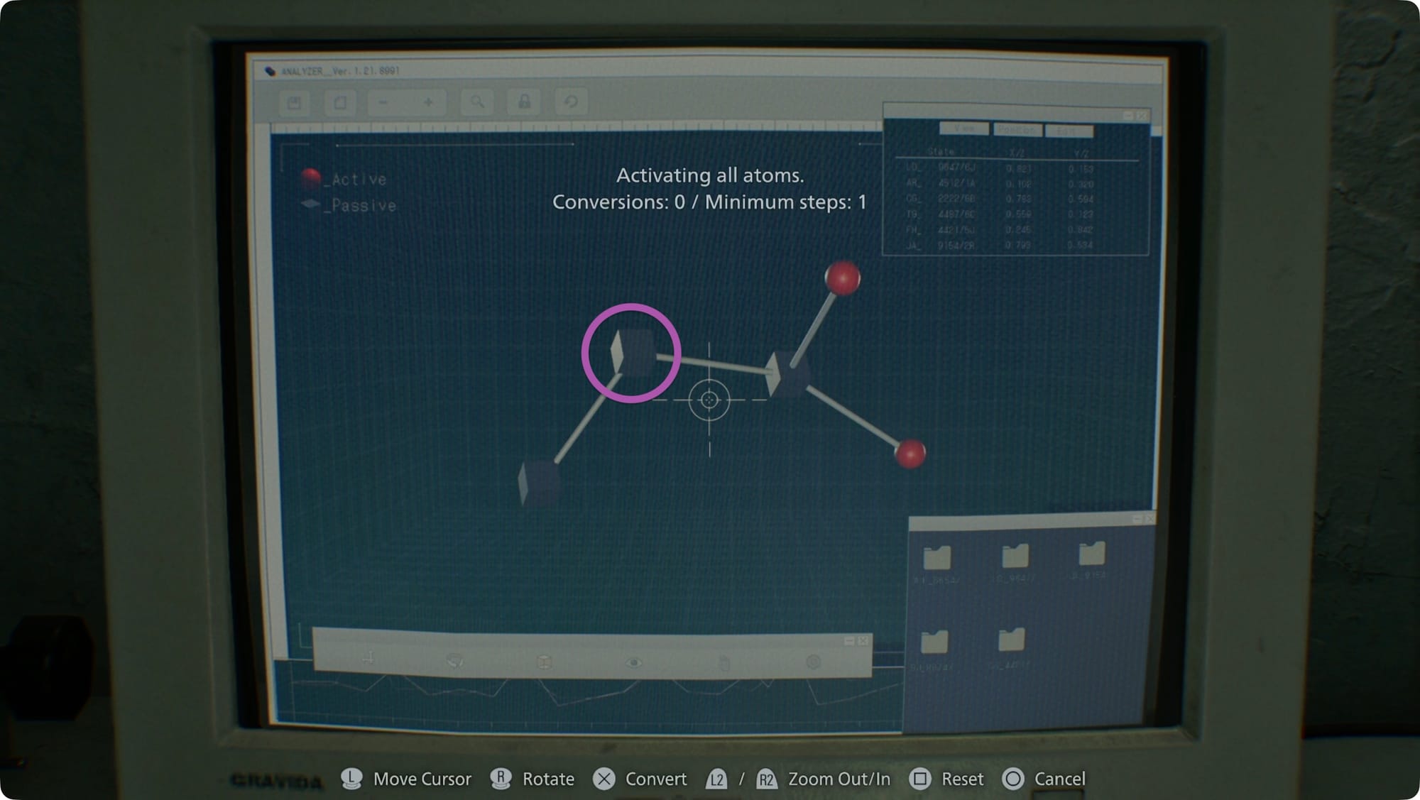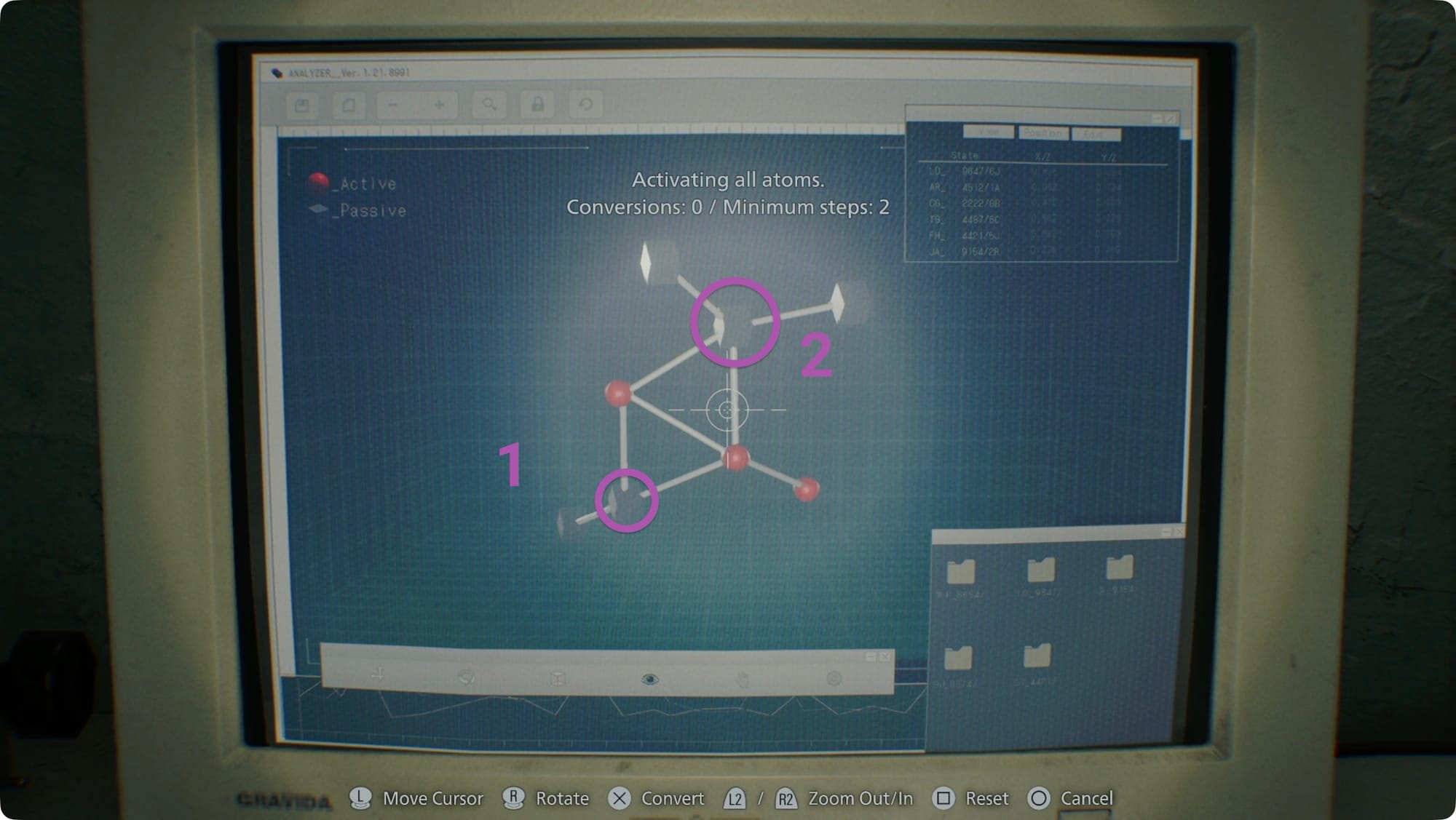 There’s a quick minigame to do where you have to light up atoms. It’s hard to explain, but you’ll know the kind of puzzle when you see it. Just click on the second one from the left.
