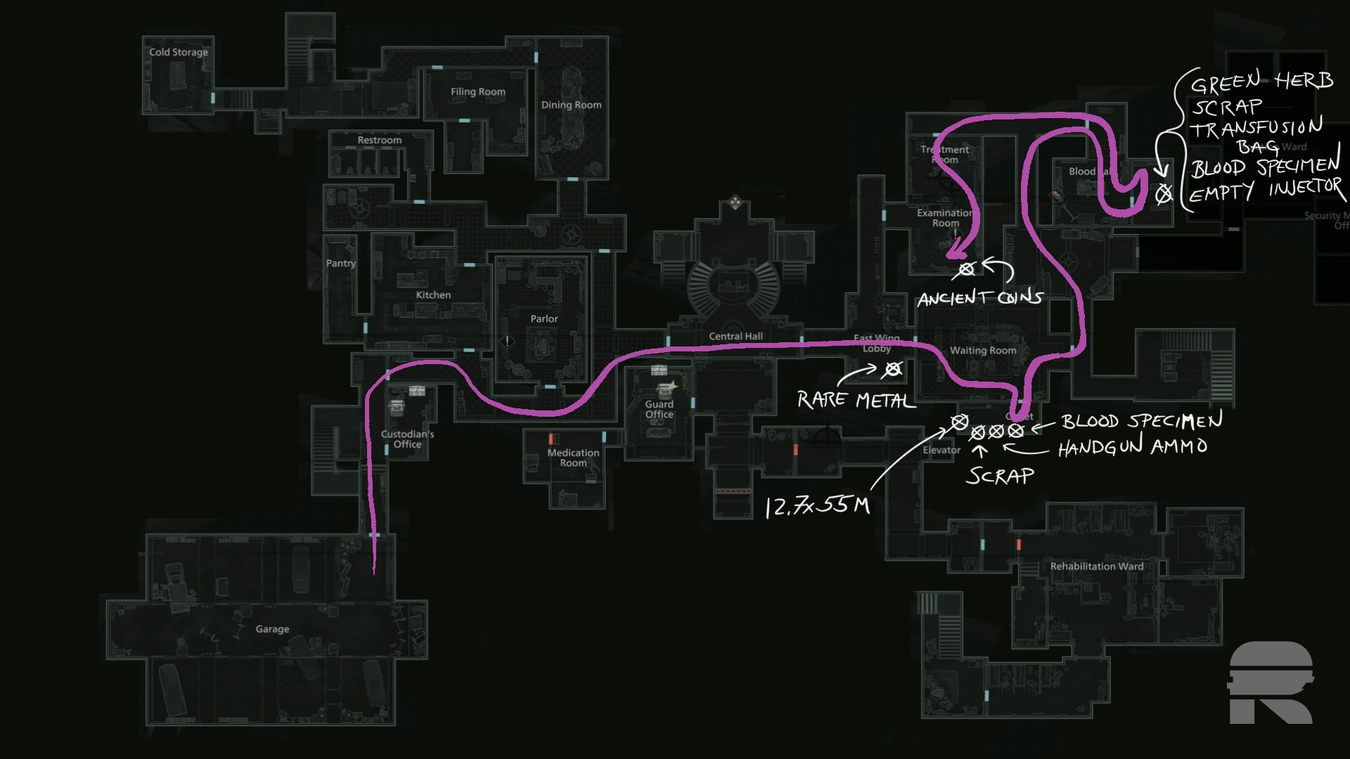 In the Waiting Room, head to where the cleaning zombie was and open the Level 1 door there. Inside, there’s a Blood Specimen (Converged), Handgun Ammo, Scrap, and a 12.7x55m round. Load that into Requiem to free up a slot.