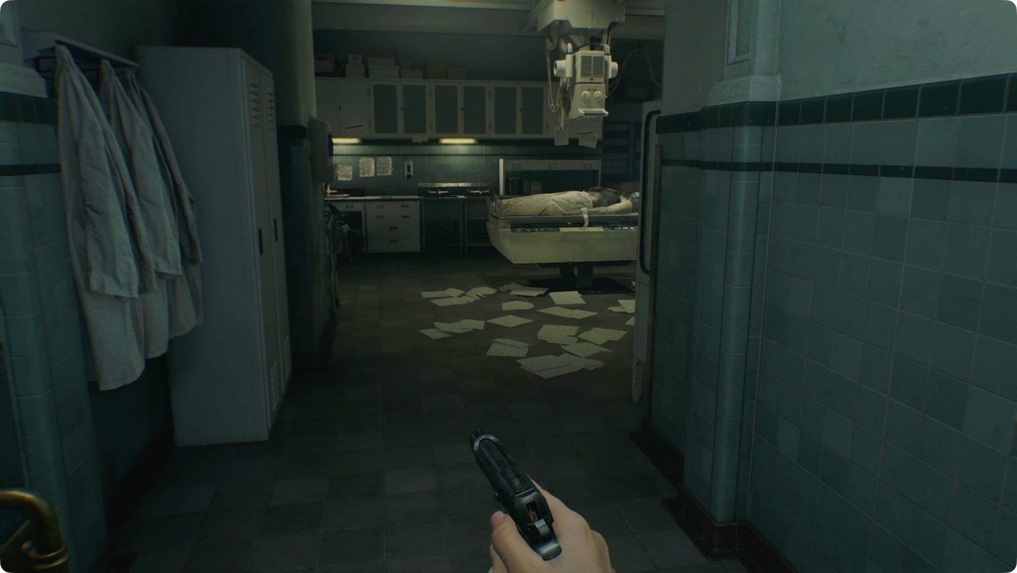 On the fallen locker, grab the Examination Room Safe Code file (that’s what we were after). Ignore the Conference Room for now and head back to the Examination Room.