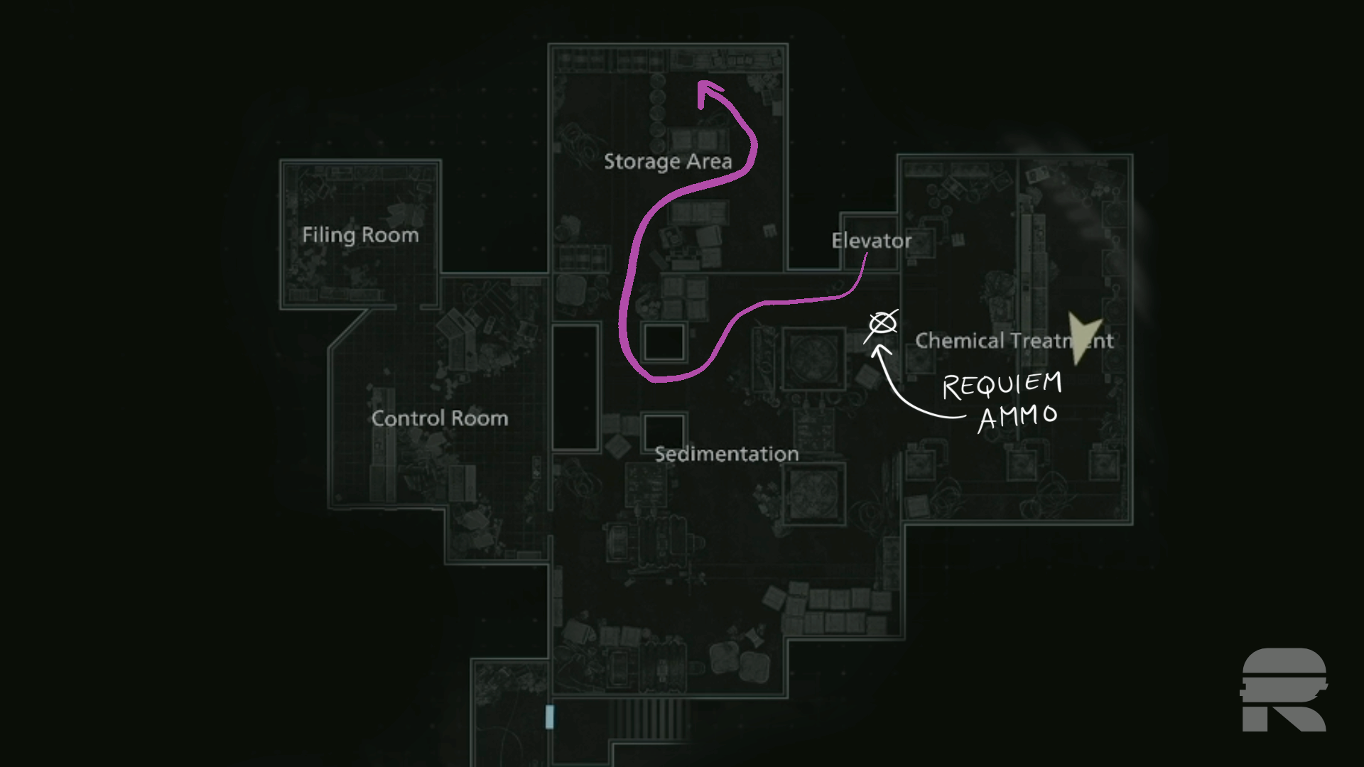 On your way back out, grab the Requiem Ammo (I’m going to call it Requiem Ammo instead of 12.7x55m every time) on the blue barrel along the west wall.