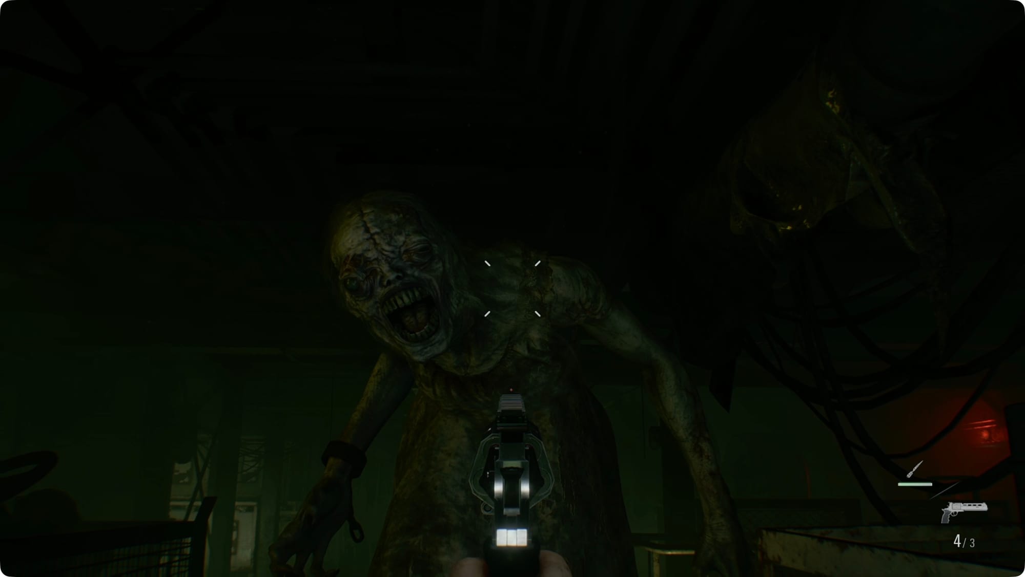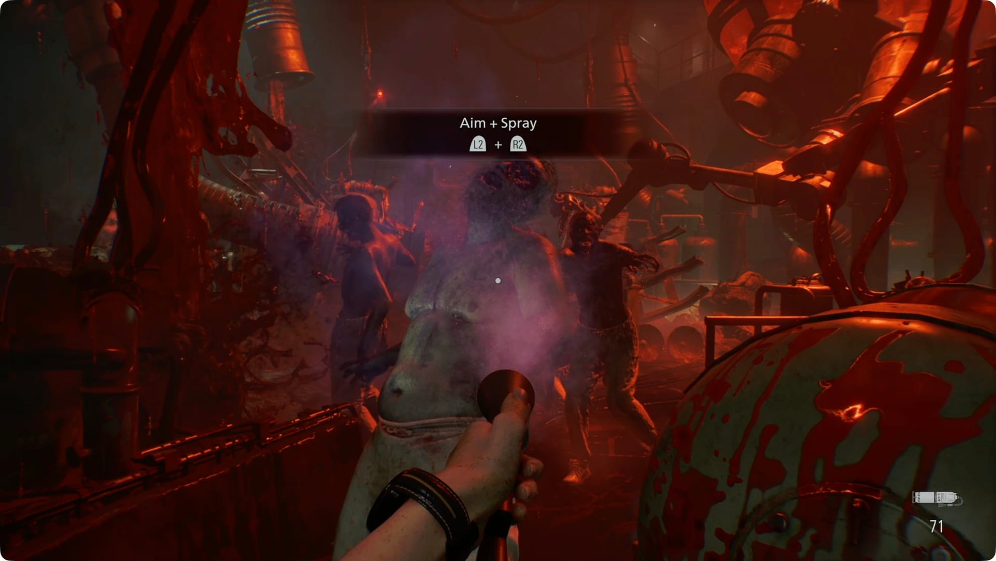 Turn right and you’ll spot The Girl. She’s coming right for you, so don’t bother hiding. Instead, you need to stagger her (briefly) with either Requiem or a Molotov.