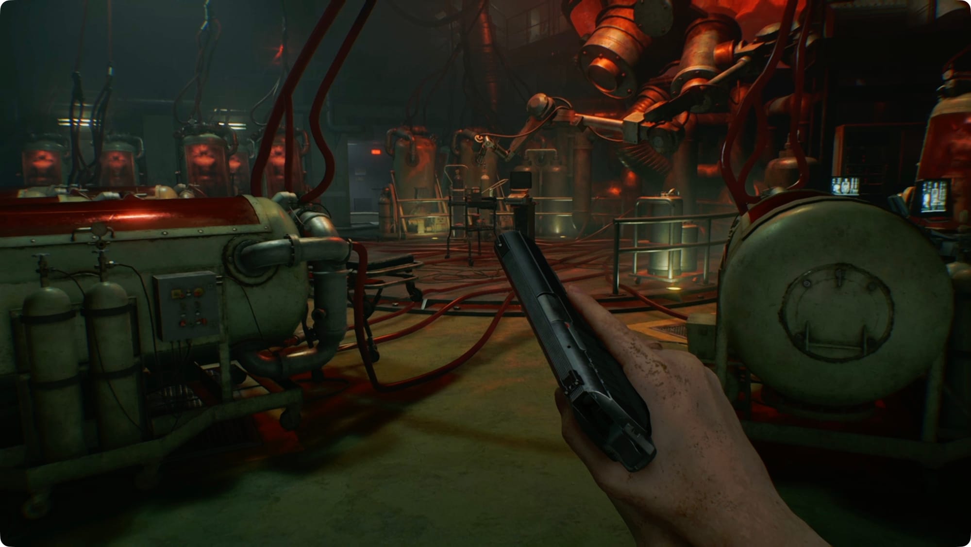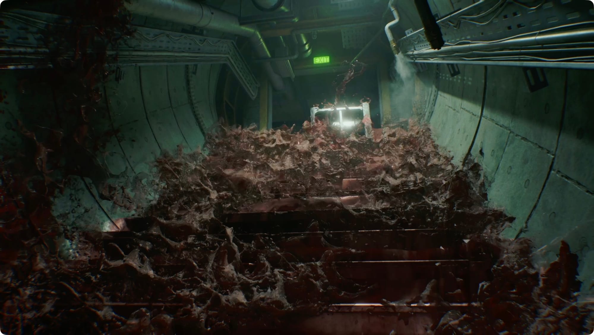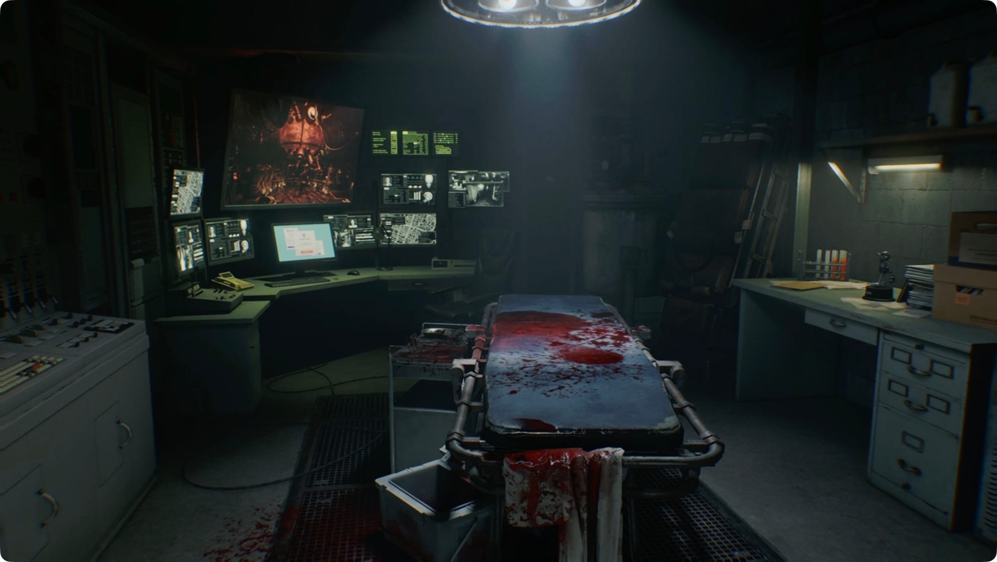In the next room, look to the left to find a used Disposal Tank and more than a little blood. (Foreshadowing!) There’s nothing else to pick up, so go through the next door.