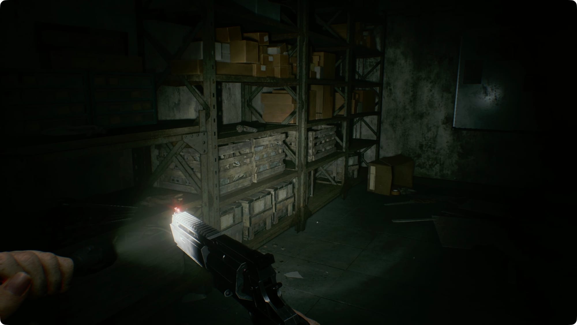 Once she’s stunned, take a right and run past her. You’ll have to snake around some crates into the Storage Area. Throw the switch along the back wall.