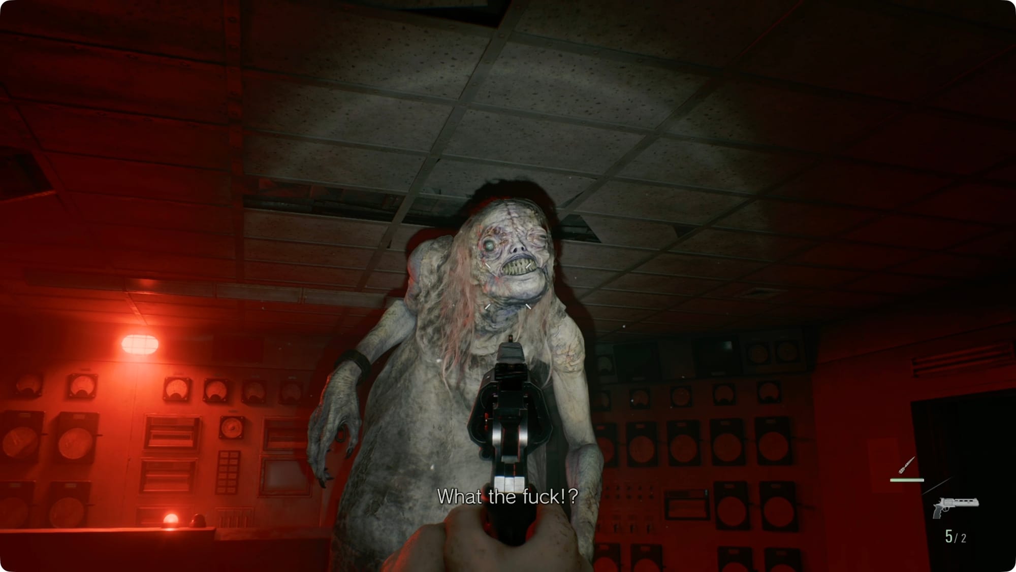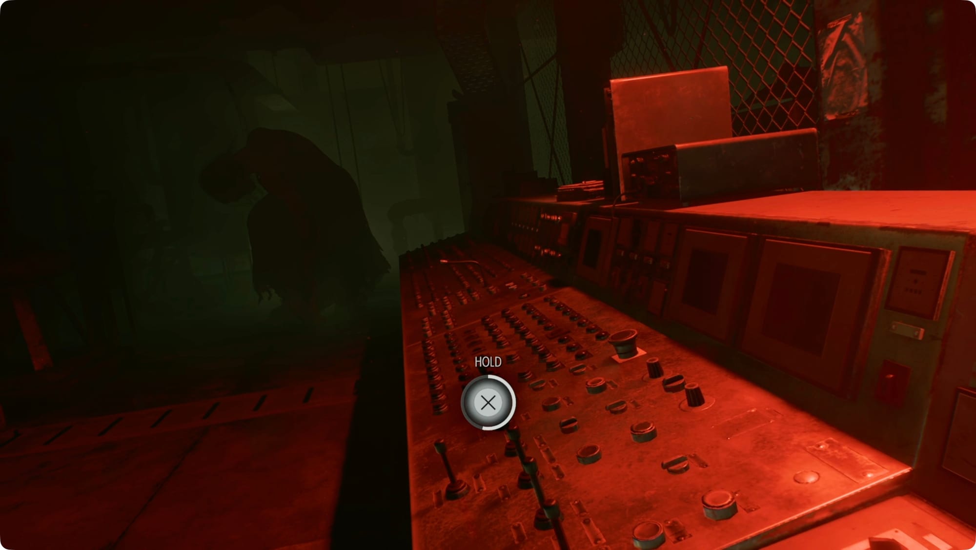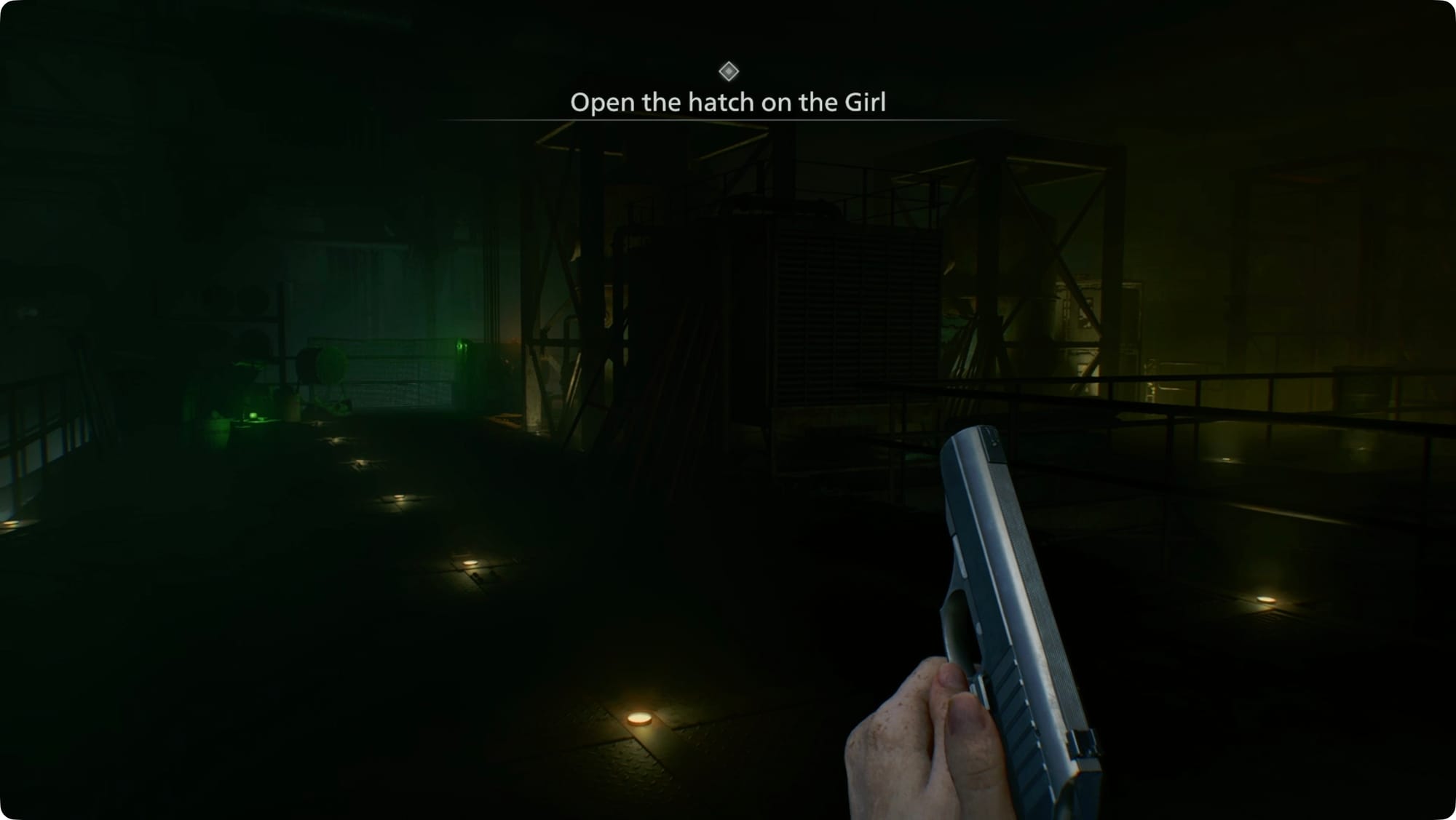 Run back around to the elevator and take it up. At the top, The Girl will show up again. Skip the hatch button and go turn on the spotlight first. With The Girl stunned, you’ll have enough time to push the button.