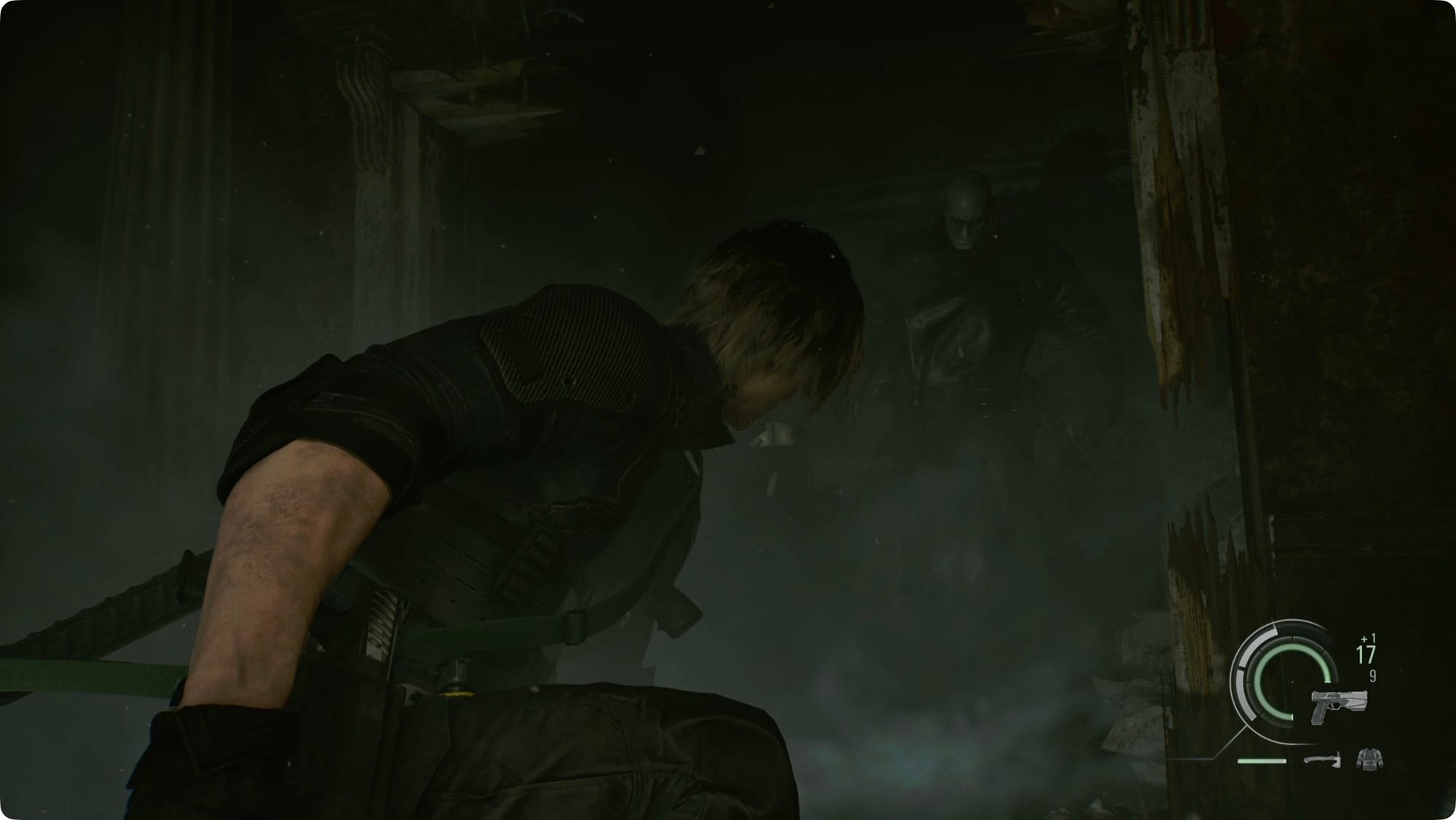 After a reunion with an old friend, you’ll be back with Leon. Start running down the hall until Mr. X smashes through the wall. Turn around and backtrack the other way until he smashes through the wall again.