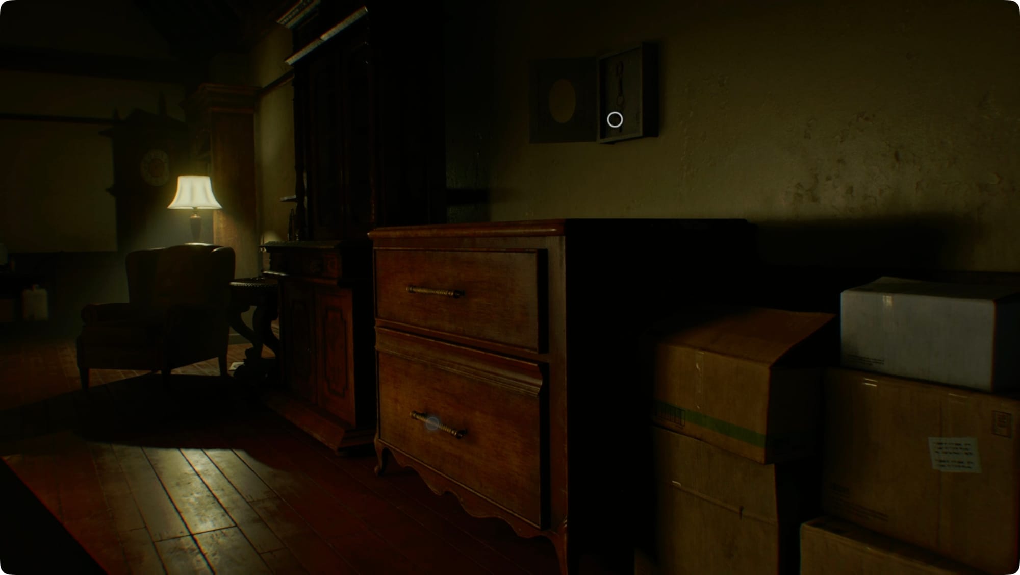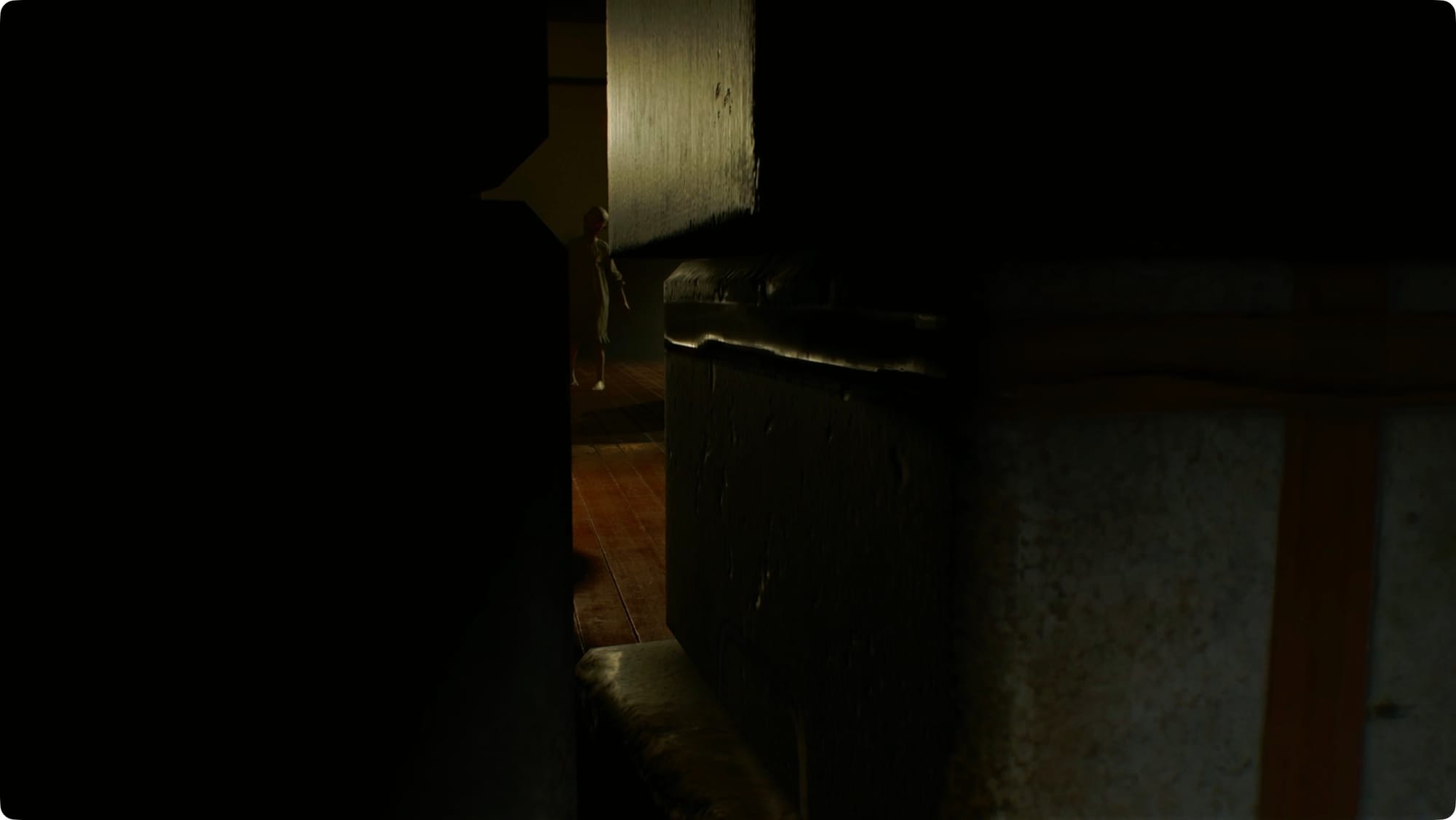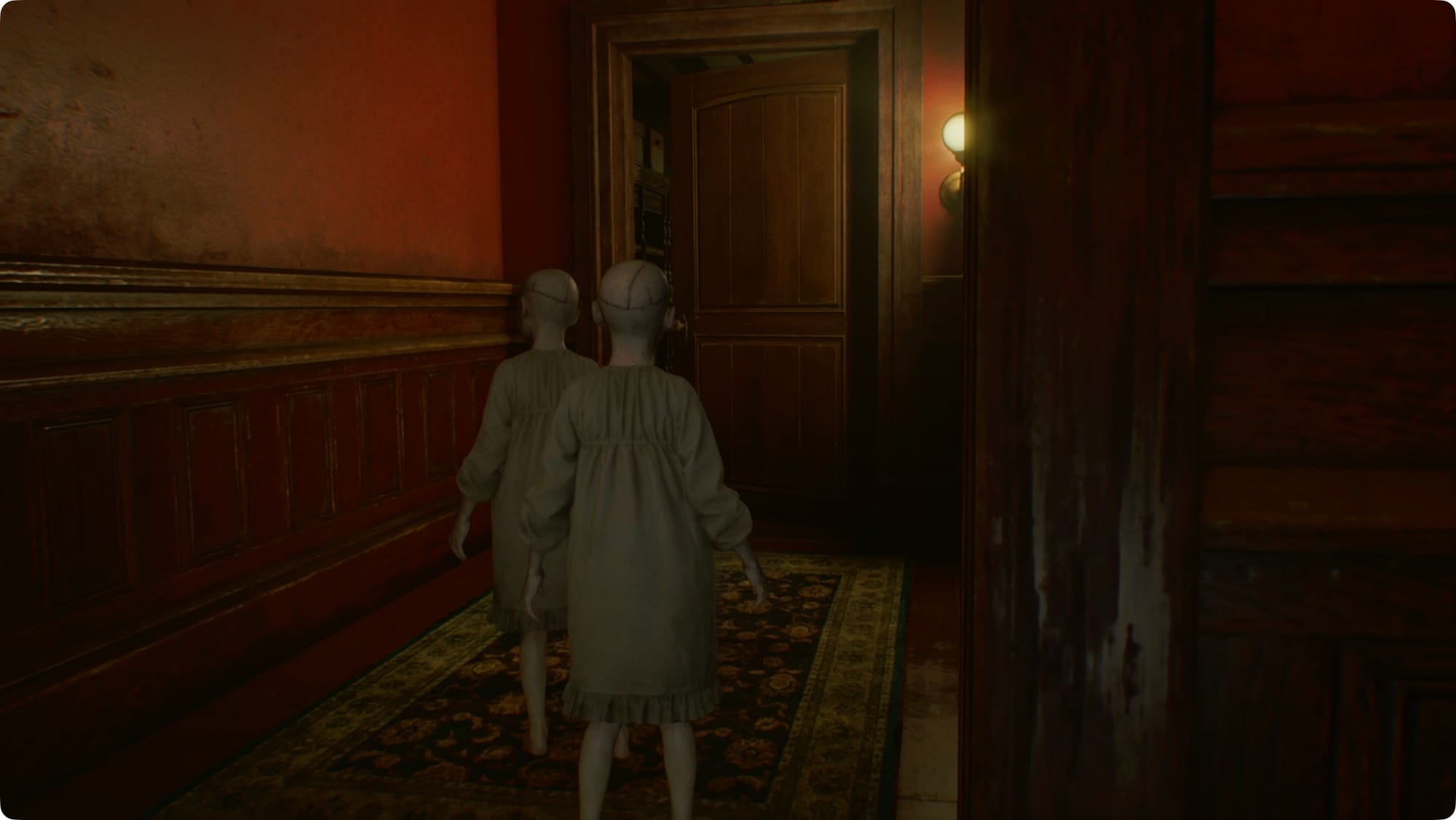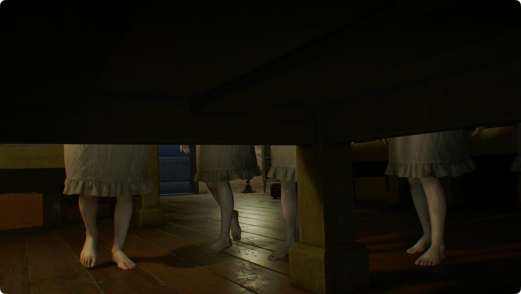 When you get control of Grace, head out to the hall and then go down to the Nursery. After the cutscene, run back to your room and hide under the bed.