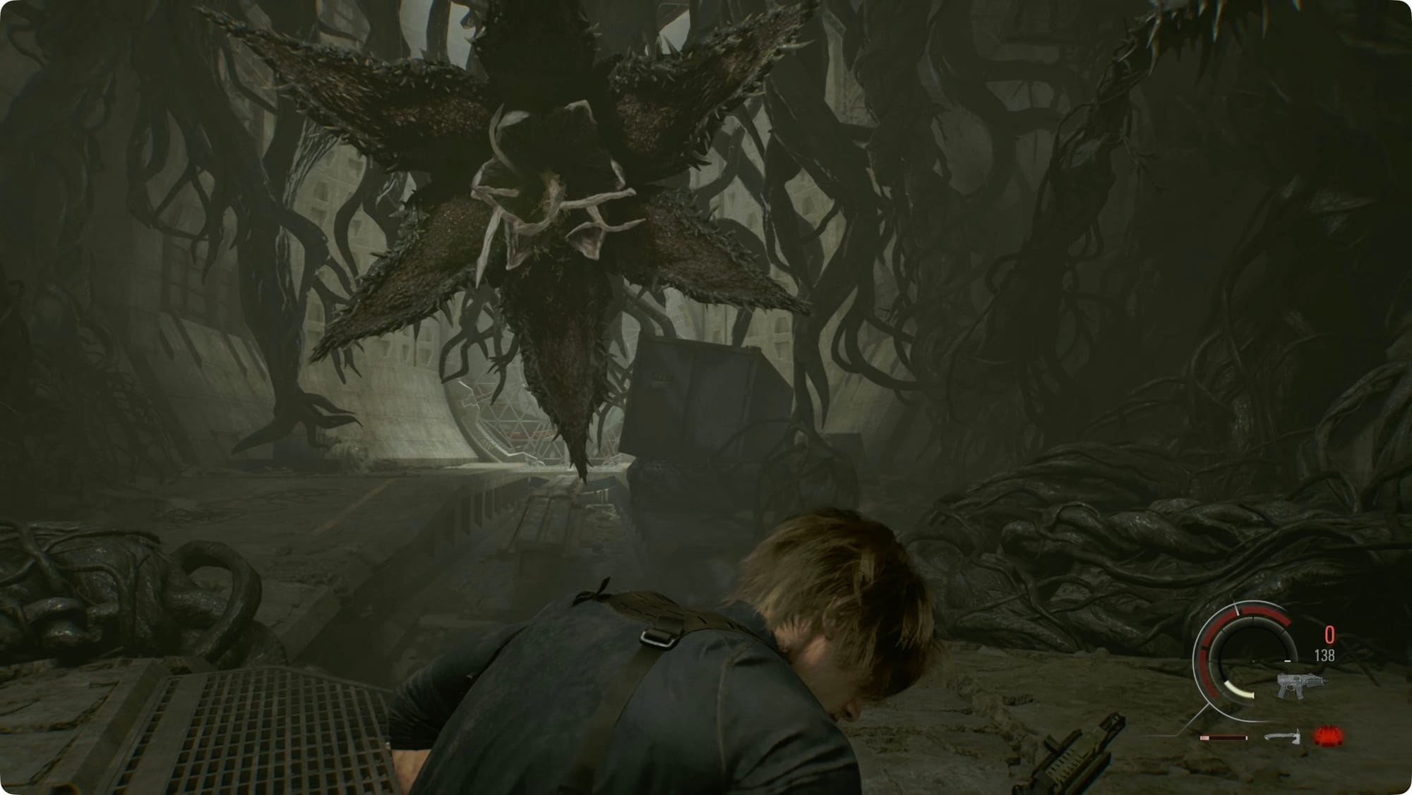 Eventually, Plant 43 (as it’s apparently called) will stop you. For the fight, just run back and forth to avoid the slam attacks while shooting it in the face a lot. You can even parry the slams.