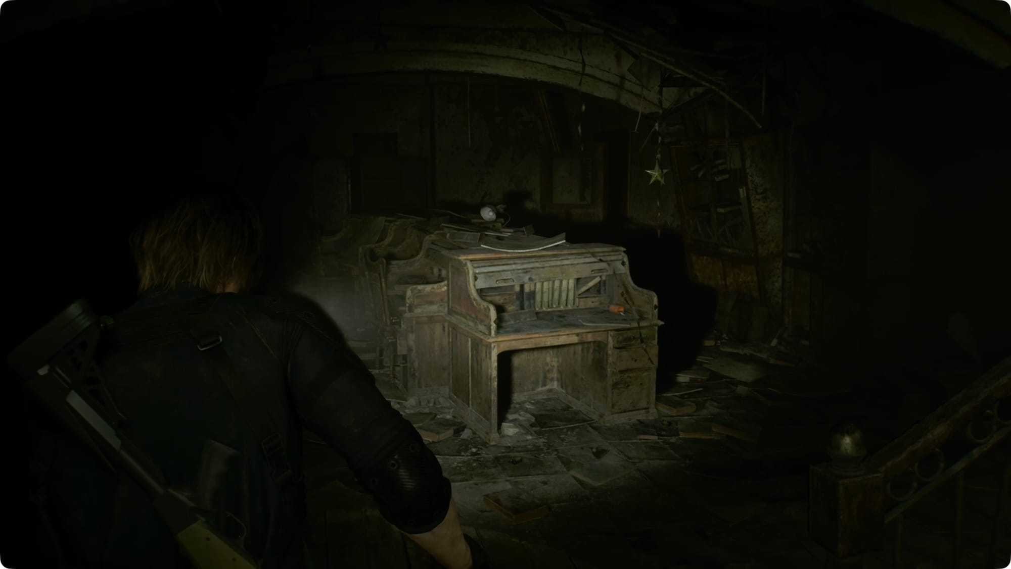 Check the blackboard for the Record of Events file, and then look along the wall on the left for a gap that lets you see outside. To the right of the gap and down near the ground, you’ll spot a Mr. Raccoon behind a breakable board.